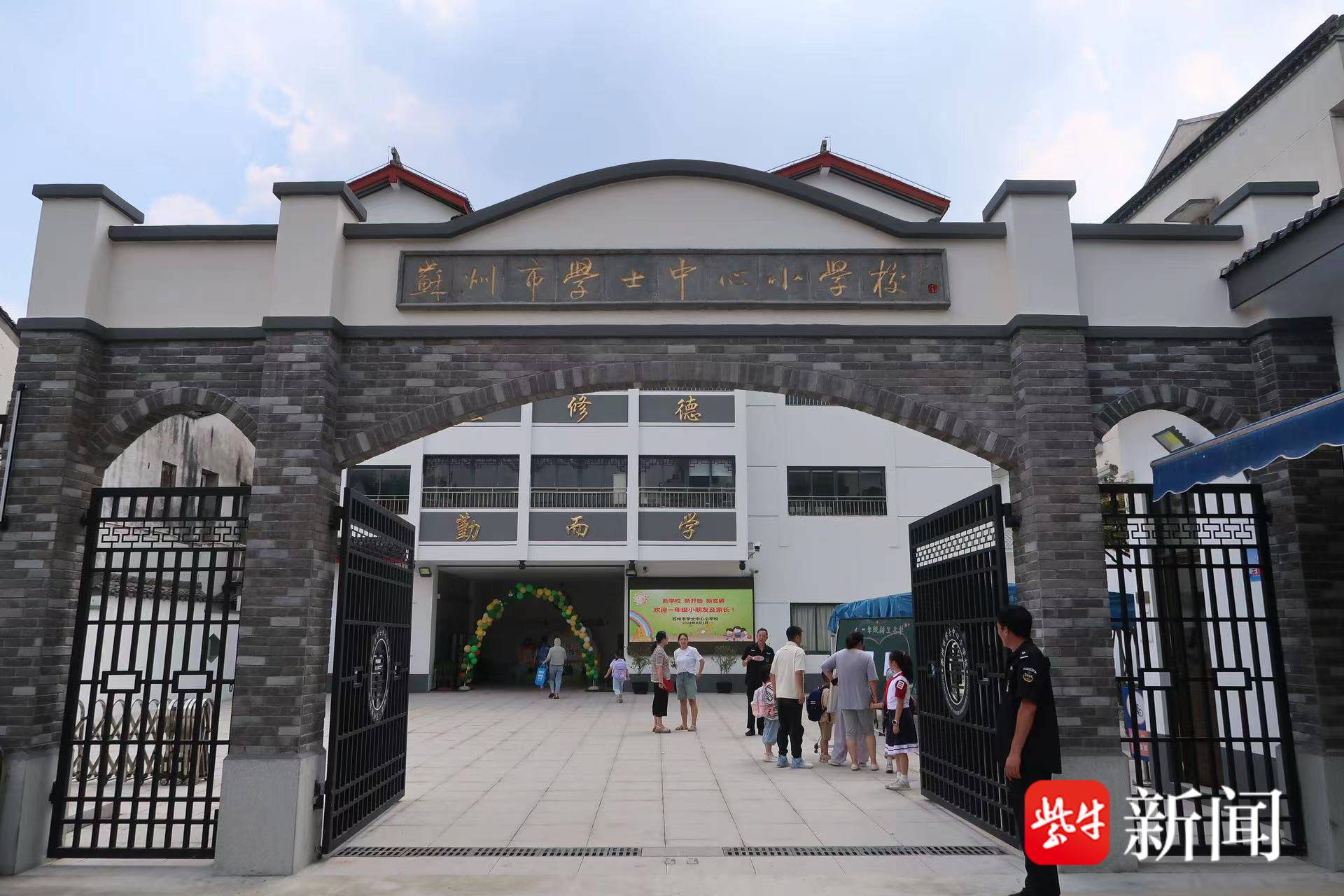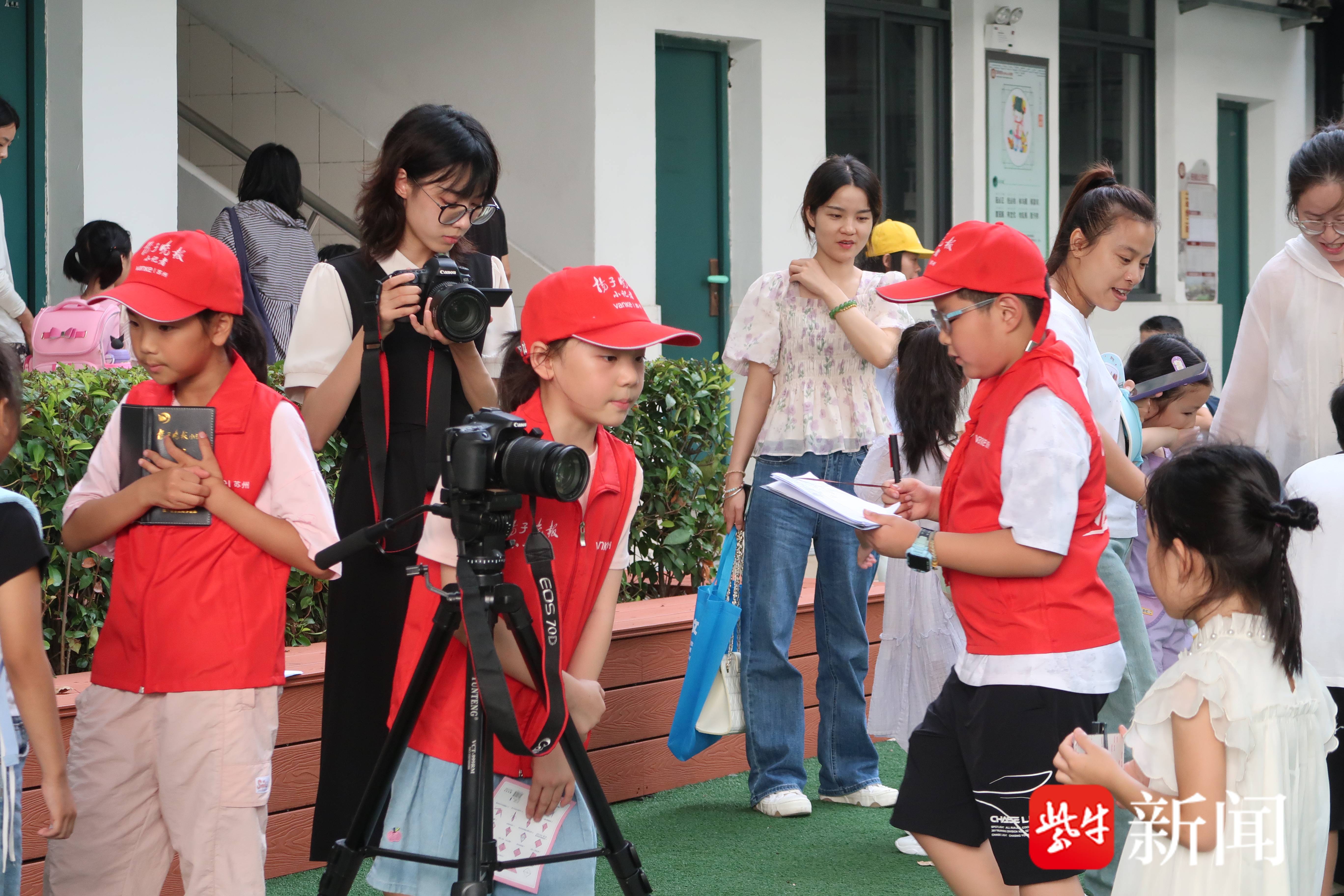 “学校大门有一种老苏州的感觉!”9月1日下午,苏州市学士中心小学校开启一年级新生报到主题活动,一群“小萌新”带着好奇与期待的心情迈进充满着文化厚重感的校门,开启人生新起点。尤其引人注目的是,来自学士中心小学校的3名扬子晚报小记者身穿红色马甲,穿梭在新生报到的活动现场,他们用敏锐的目光和生动的笔触,捕捉着校园里每一个精彩瞬间。