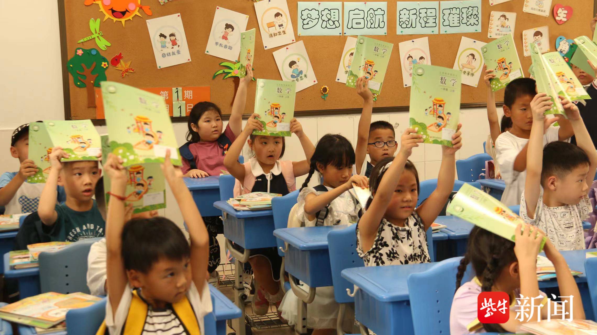 喊口号、发新书、打卡校园......“迎新”活动让每位小朋友情绪高涨。在班级内,一年级的小朋友按照老师的要求,认真学习如何列队,如何传递课本。“身正,肩平,脚稳!”跟着老师的口号声,孩子们挺直腰背,双肩放平,双脚稳固地踩在地上,学习正确的坐姿。