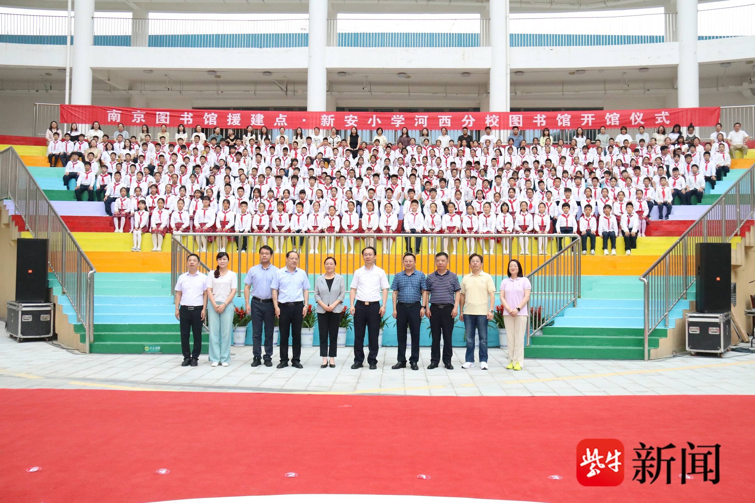 仪式上,新安小学的学生代表发言,表达了对新图书馆的期待和喜悦。河西分校校长致辞,感谢南京图书馆对学校的支持和帮助。随后,出席仪式的领导们共同为新安小学河西分校获得暑假“读书之星”的学生颁奖,鼓励他们继续在阅读和学习上取得优异成绩。