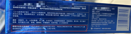 体验中还发现“全家共用”牙膏标注标识打“擦边球”现象。有牙膏宣称全家使用或暗示牙膏可以适用于儿童,但是通过“腔溃消”字样暗示医疗功效,该产品能否安全适用于儿童存疑。