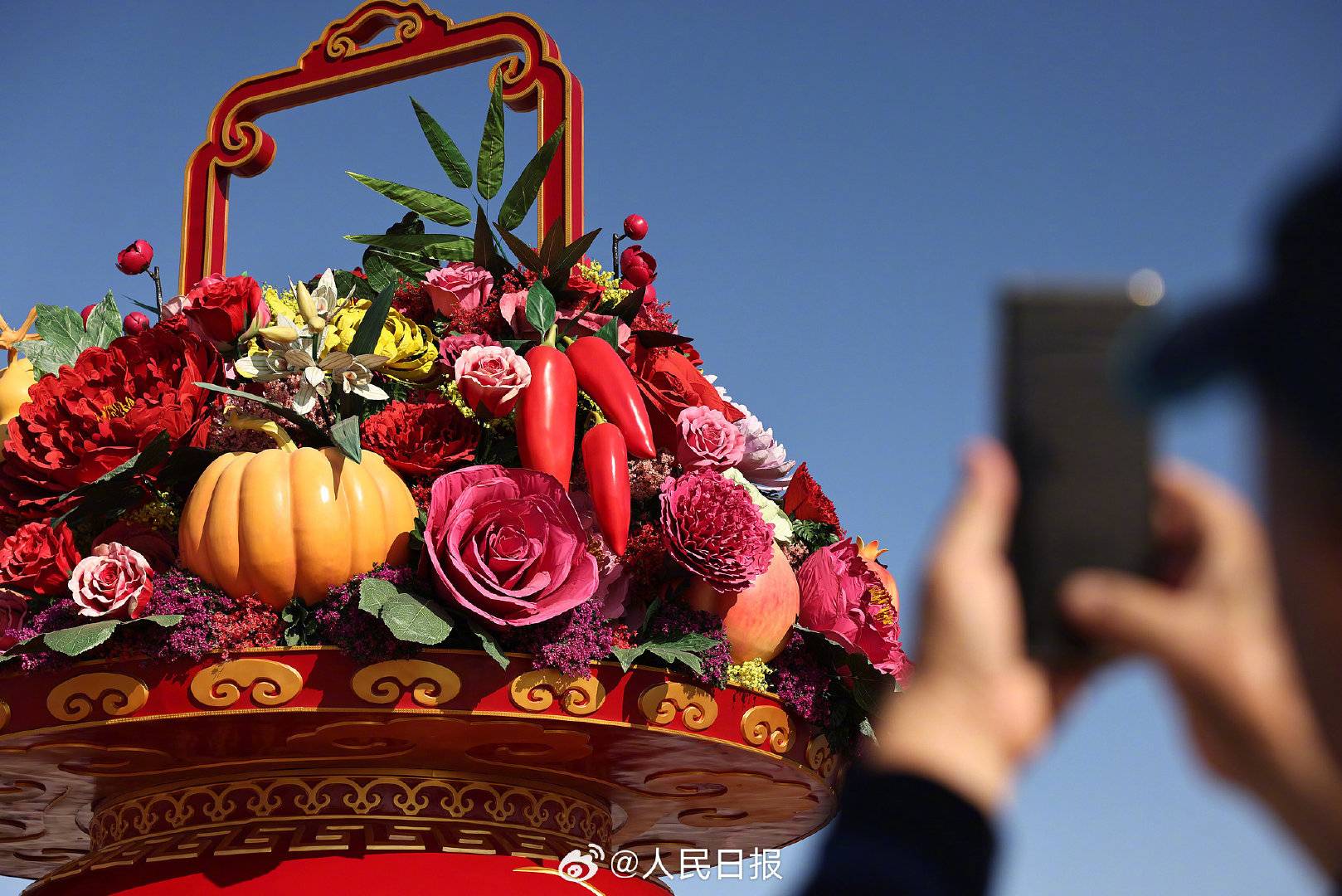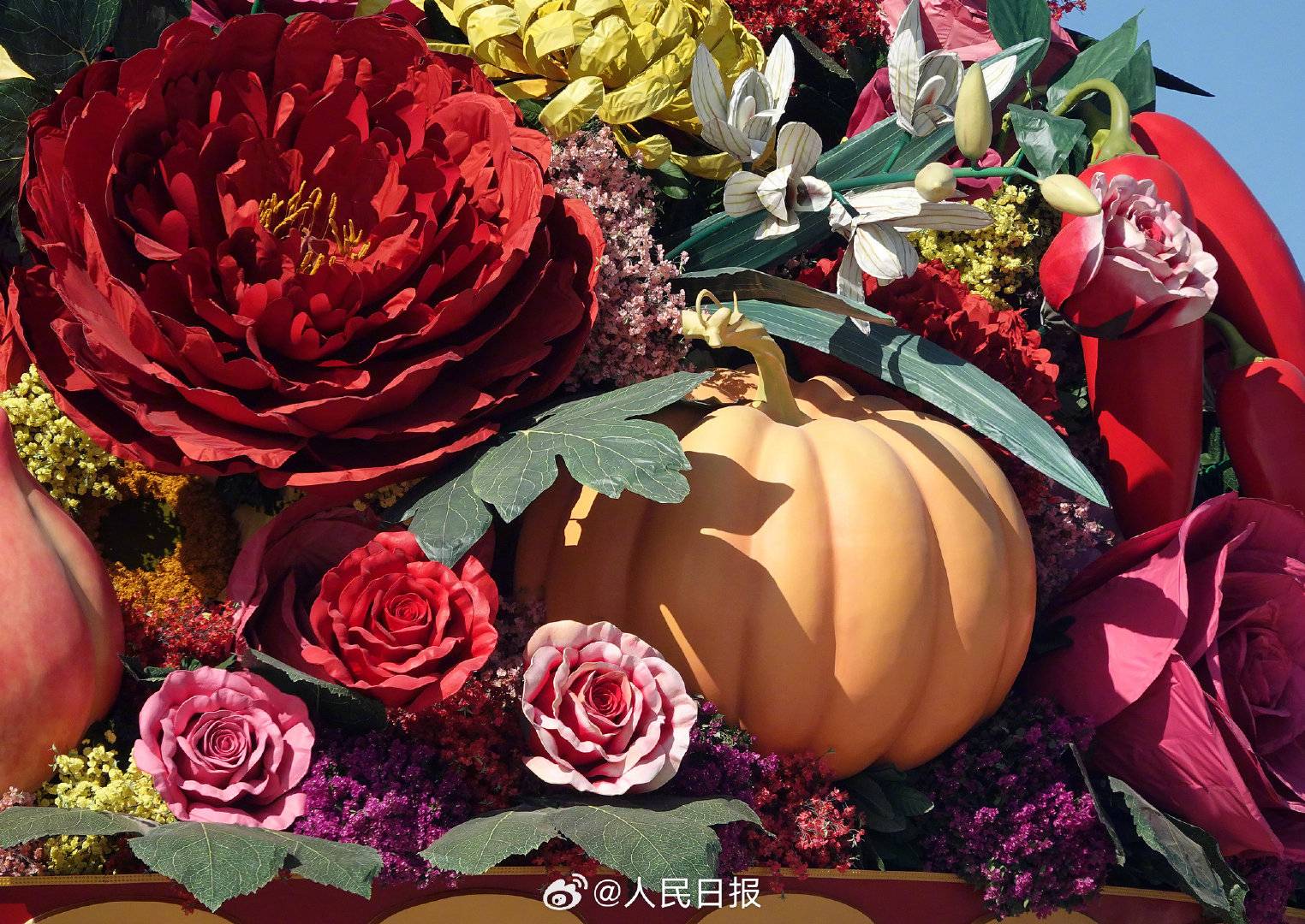 据悉,立体花坛:以喜庆的蔬果花篮为主题,选取了南瓜、石榴、葫芦等美好寓意的蔬果,以及牡丹、月季、向日葵、康乃馨等艳丽多彩的花卉,体现“蔬果飘香 繁花似锦”,表达对祖国繁荣富强、欣欣向荣的美好祝福。