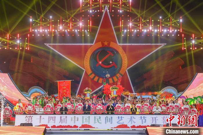 中新网江西瑞金10月11日电(刘力鑫)10日晚,以“新长征·再出发”为主题的第十四届中国民间艺术节在江西省瑞金市开幕。本届艺术节期间,将举办艺术节开幕式文艺晚会、中国民间文艺山花奖·优秀民间艺术表演作品终评、民间文艺名家座谈交流会、优秀民间文艺节目惠民演出、纪念红军长征出发90周年·主题版画特展、江西传统民间工艺美术展等系列活动。