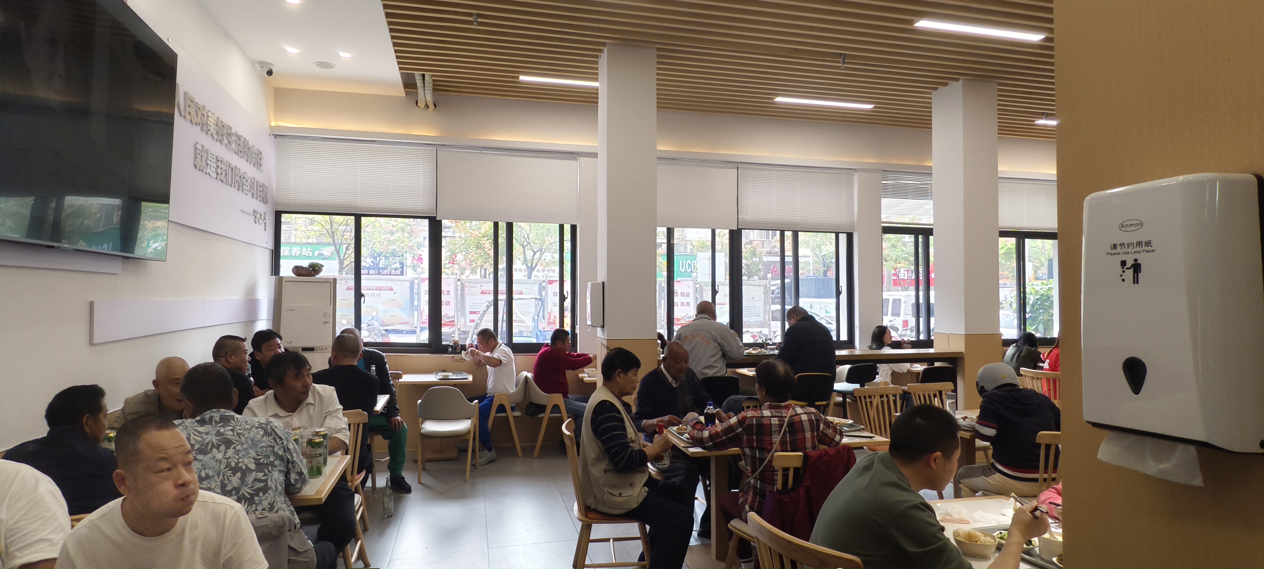 中午临近饭点,南通市崇川区永兴佳园小区的社区食堂饭菜飘香、人头攒动,走进食堂,食客已经排起了长队,不少座位已经坐满,食客中既有鬓发花白的老人,也有不少中青年人。饭菜健康可口又省心方便,让不少中青年人群也走进社区食堂,与老年人成为“饭搭子”。“一个人做饭太麻烦,社区食堂为我省事了。”家住公园新村的朱桂萍中午都来这家社区吃饭,她告诉记者,“最近每天都是开十分钟电瓶车来吃的,过几天就不来了,我们小区门口也开一个了。”