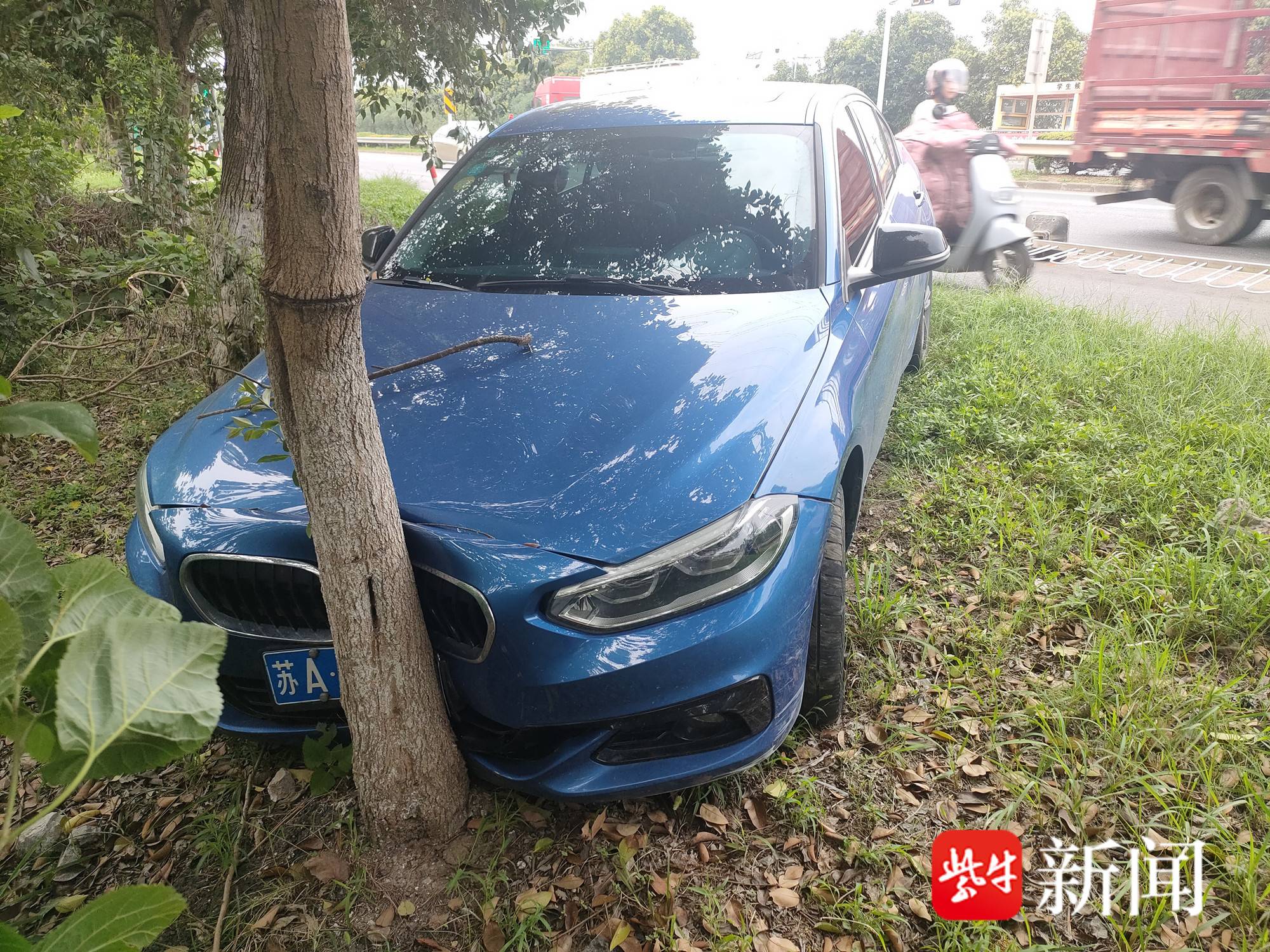 图为小轿车撞树的现场