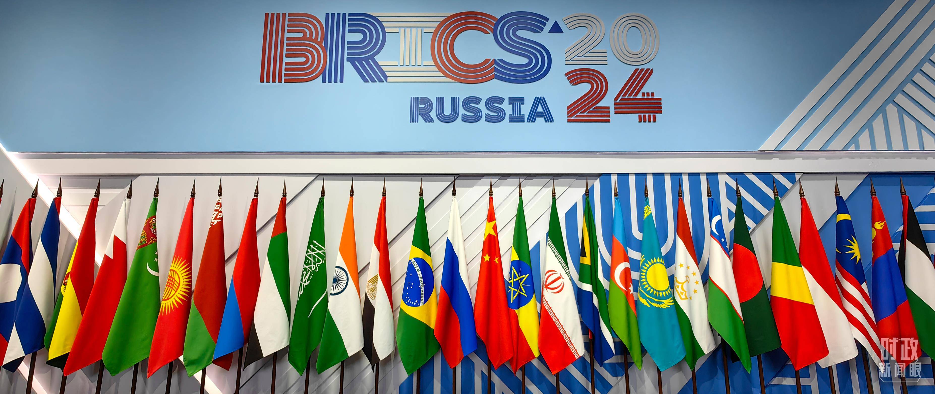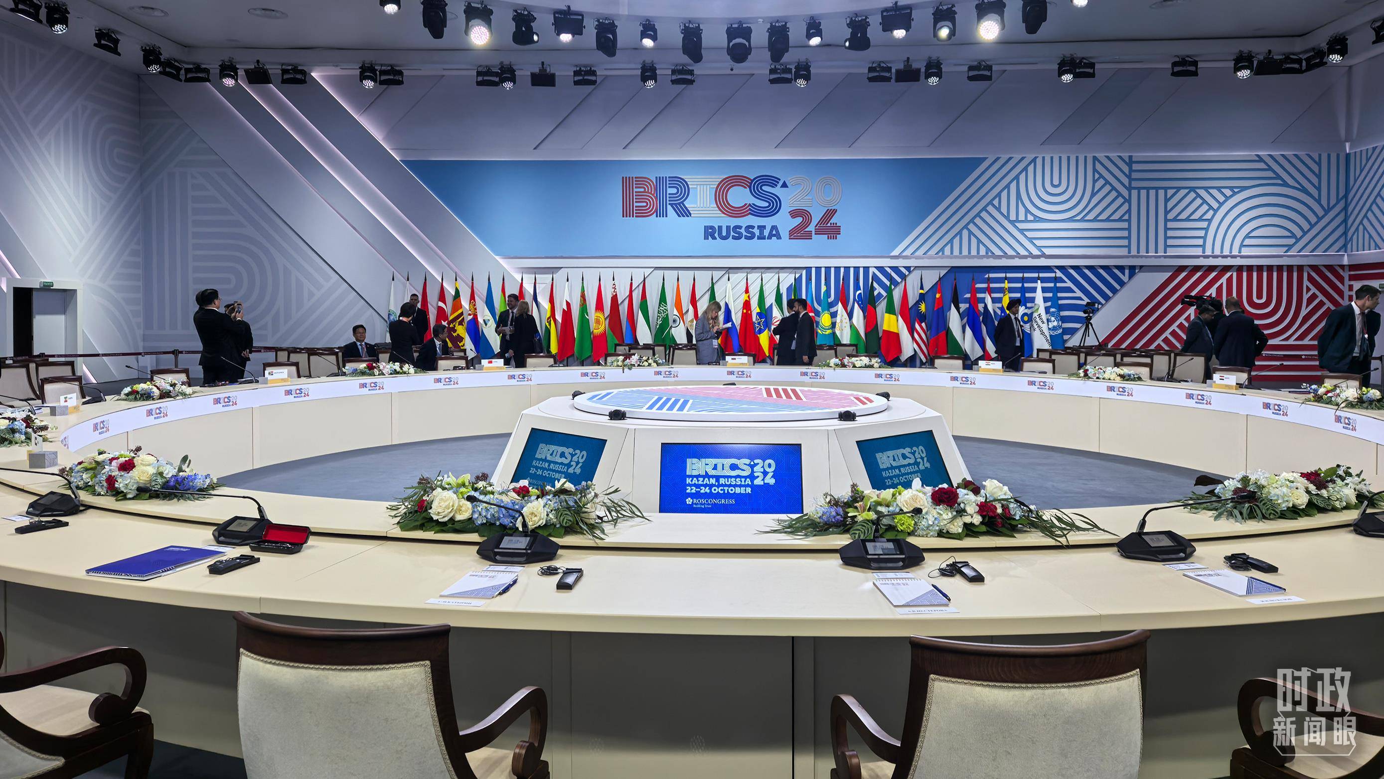 △ 金砖国家领导人大范围会议现场摆放的旗阵。(总台央视记者段德文拍摄)