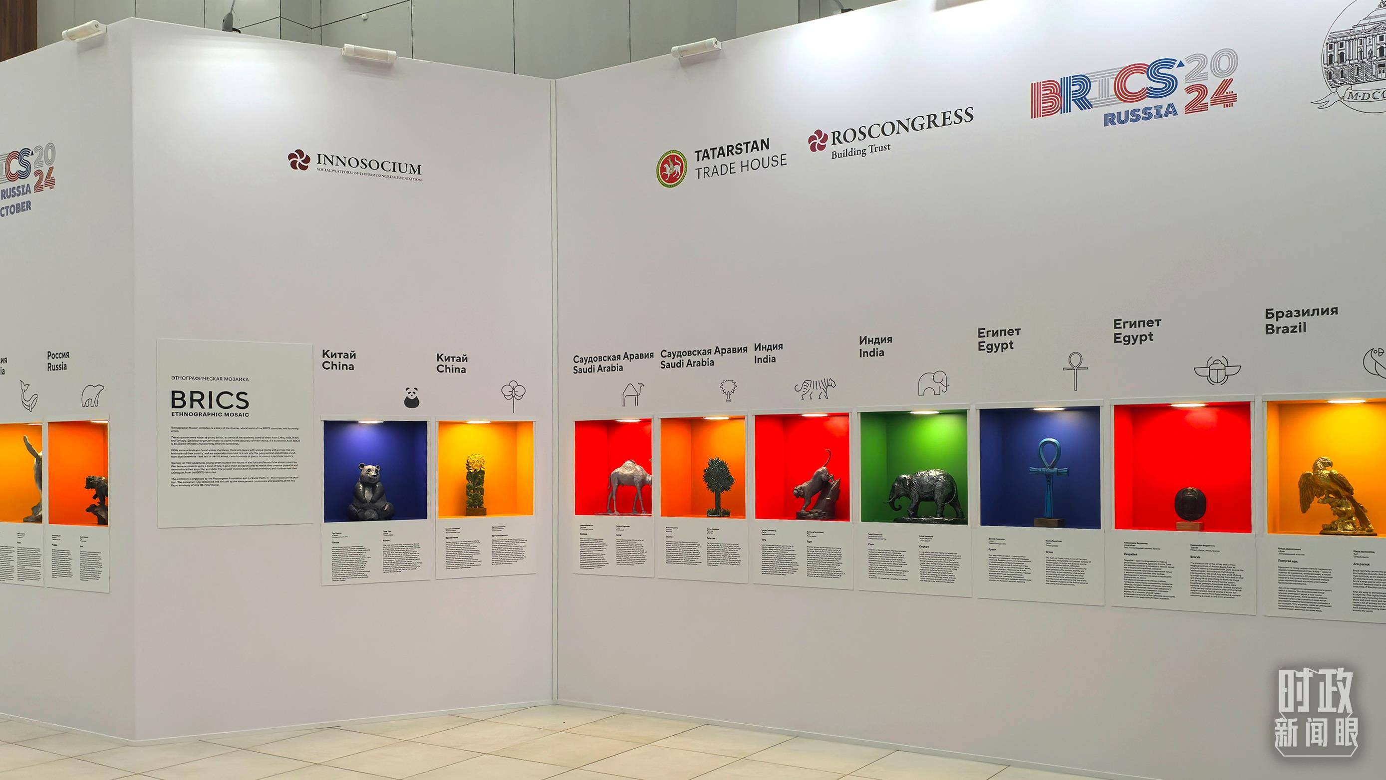 △ 喀山会展中心内展示的金砖国家工艺品。(总台央广记者潘毅拍摄)