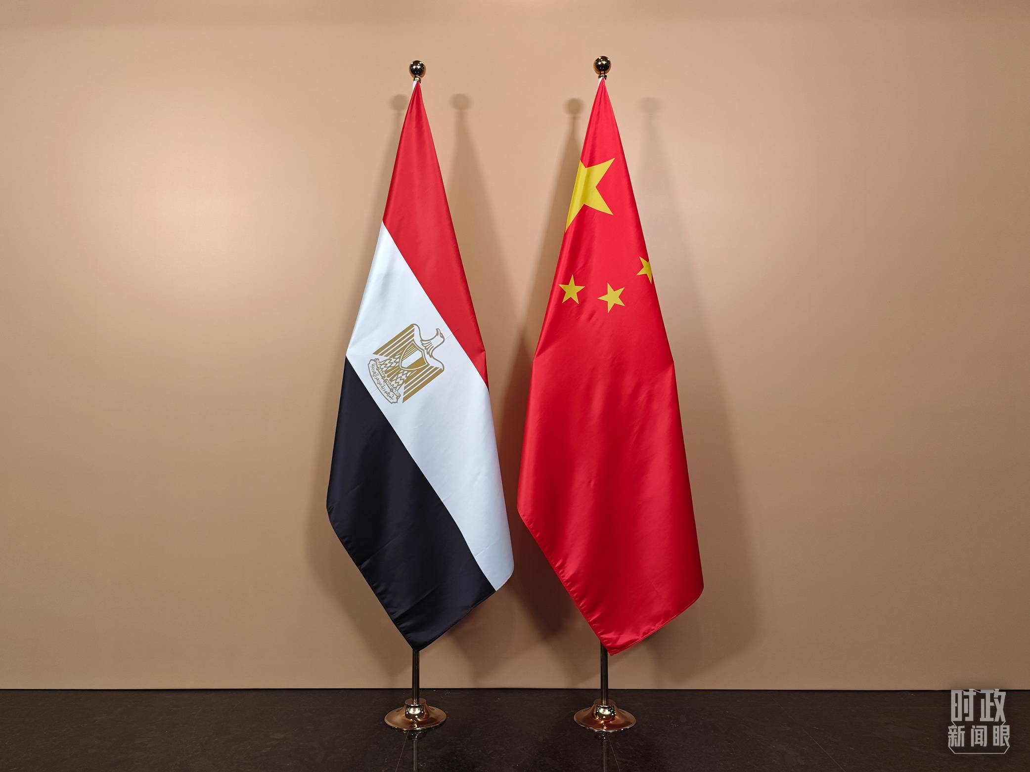 △ 会见厅外的中国埃及两国国旗。(总台央视记者彭汉明拍摄)