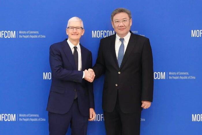 商务部部长王文涛会见美国苹果公司首席执行官库克