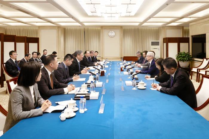 10月25日,商务部部长王文涛会见美国苹果公司首席执行官库克。双方就苹果公司在华业务发展、中美经贸关系等进行了交流。