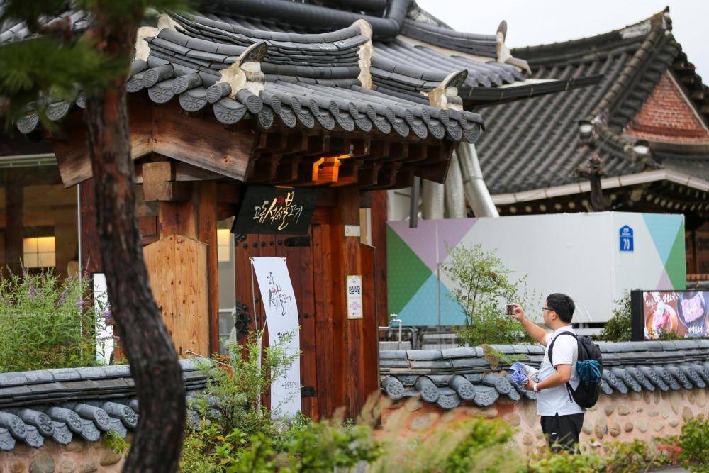 2023年9月20日,游客在韩国全罗北道全州韩屋村游览拍照。新华社记者王益亮摄