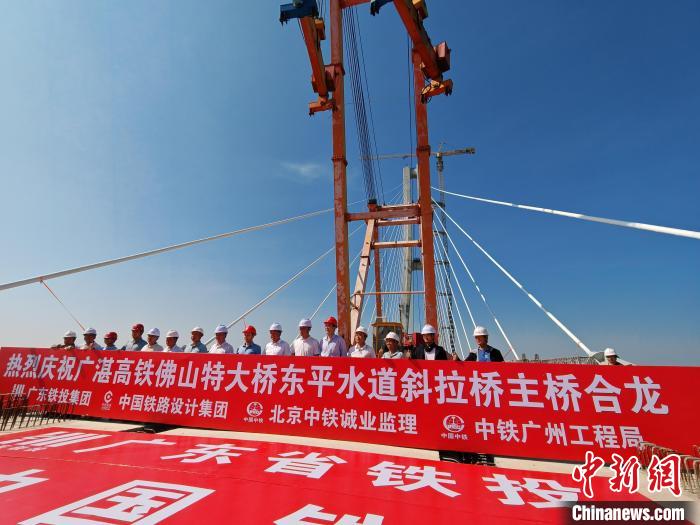 世界上跨度最大的无砟轨道斜拉桥——广湛高铁佛山特大桥跨东平水道斜拉桥31日顺利合龙。郭军 摄