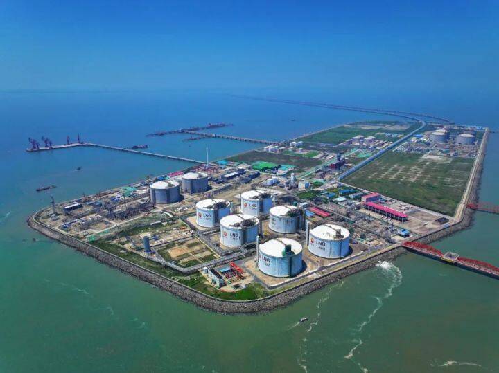 2019年12月,中共中央、国务院印发《长江三角洲区域一体化发展规划纲要》,明确提出,加快江苏如东LNG接收站扩建。如东能源岛建设迈入加速期,目前,岛内已集聚中石油、协鑫汇东、国信、华润等4座LNG接收站项目,年接卸周转能力为700万吨,可满足江苏全年近三分之一的天然气用量。预计到2027年,整岛年接卸能力将突破2600万吨。