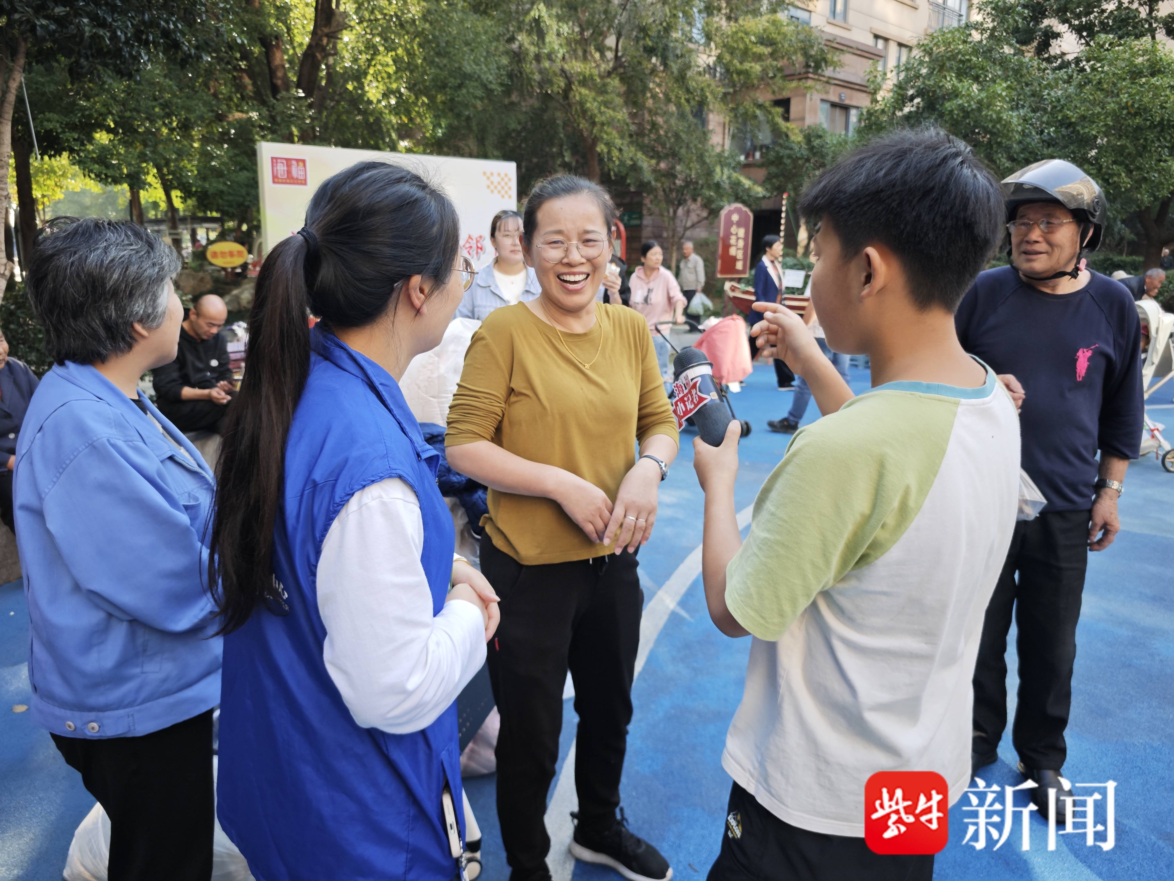 “阿婆,今天的睦邻节这么热闹,你最喜欢哪里呢?”海福小记者脆生生的声音响起,“我喜欢今天这个集市,热热闹闹的,让我想到了以前居住的福山街上‘三月廿八’庙会的热闹场景,很是怀念,我们几个老邻居刚刚约好明年一起回去逛逛。”“我喜欢共享凉亭那边的美丽风景,灯光和花卉的完美融合,真是让人赏心悦目,我们平时在那边休憩,感觉很舒服……”随着小记者们采访结束,大家一起来到了33幢“儿童友好”架空层空间。“邻里间 如家人;少纷争 多容忍;遇急事 胜远亲;常问候 增感情……”齐齐的朗读声响起,孩子们开启了阅读时光。“大家觉得邻里之间要做到哪些礼节呢?”海福书香志愿者问道,“邻居见面要主动问候。”“遛狗要牵绳,并及时清理排泄物。”……小朋友们围坐一圈,结合刚才采访到的内容,大家一起讨论增进邻里关系的话题,更是在故事剧场环节,孩子们纷纷上台,用稚嫩的声音讲述着自己的邻里故事,有的讲述邻里间互帮互助的温馨瞬间,有的分享与邻居小朋友一起成长的快乐时光,你一言我一语,不知不觉间,童邻间的感情更加紧密了。