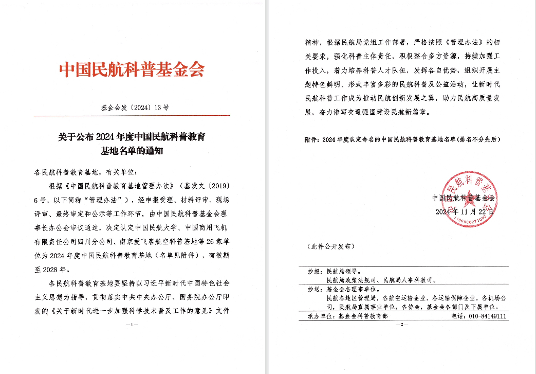 截至目前,中国民航科普基金会在全国范围内共设有科普基地80家。