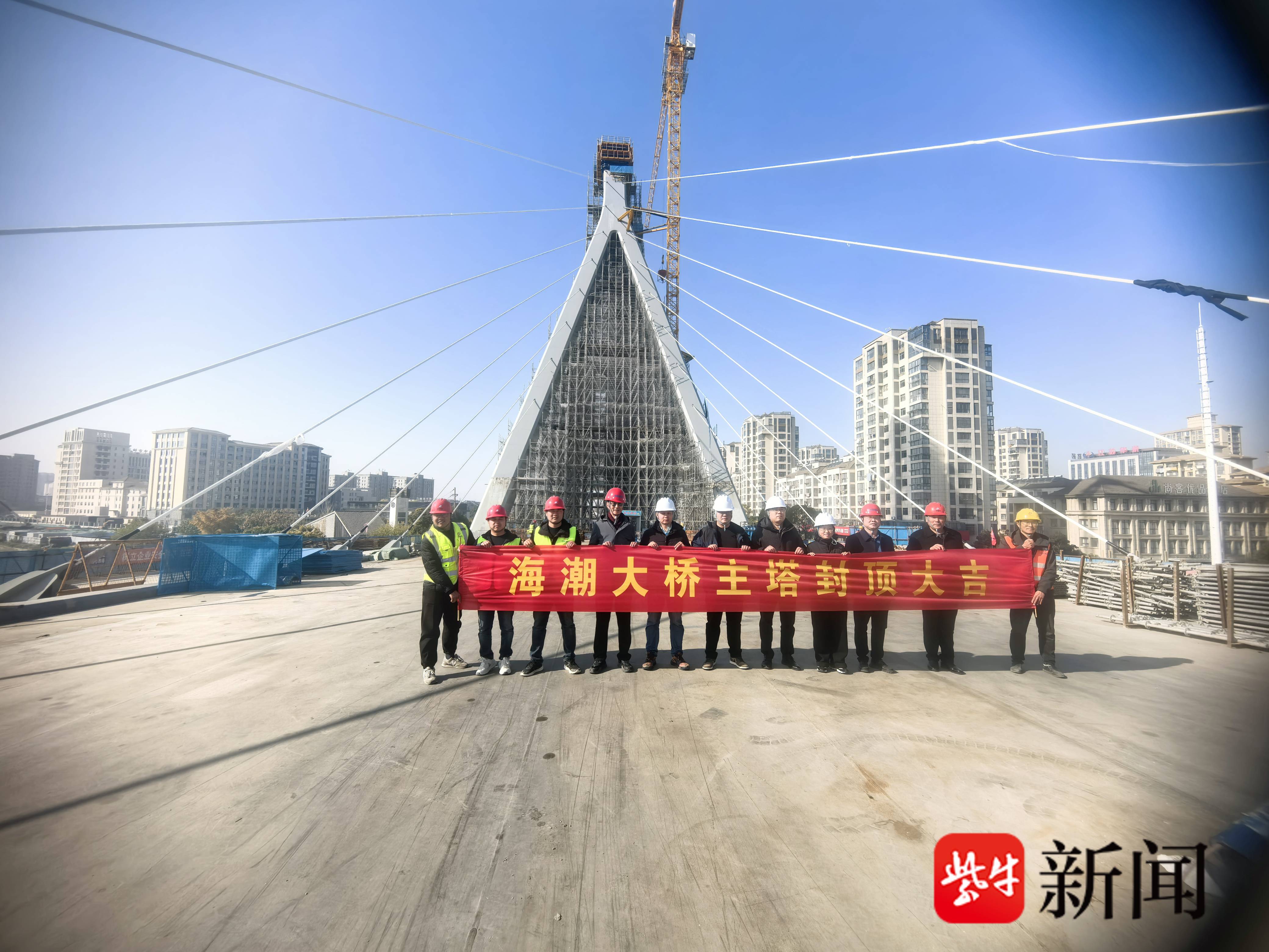 高邮海潮大桥主塔顺利封顶