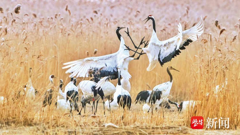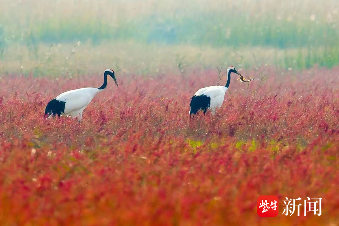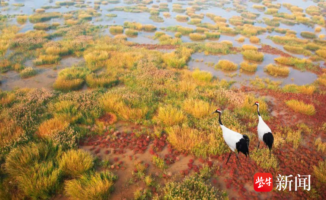 江苏盐城湿地珍禽国家级自然保护区建立于1983年,占地24万多公顷。每年秋冬时节,2000万只候鸟迁飞经过这里,记录有421种鸟类在此栖息。近年来,保护区持之以恒对生态环境进行保护与修复,累计实施湿地修复、退渔还湿约40余万亩,取得不俗的生态保护成绩。而最为瞩目的是,每年都会有近500只野生丹顶鹤“用脚投票”迁徙到这里越冬,人工繁育的丹顶鹤也在这里通过野化放归,不断壮大着濒危的丹顶鹤种群。