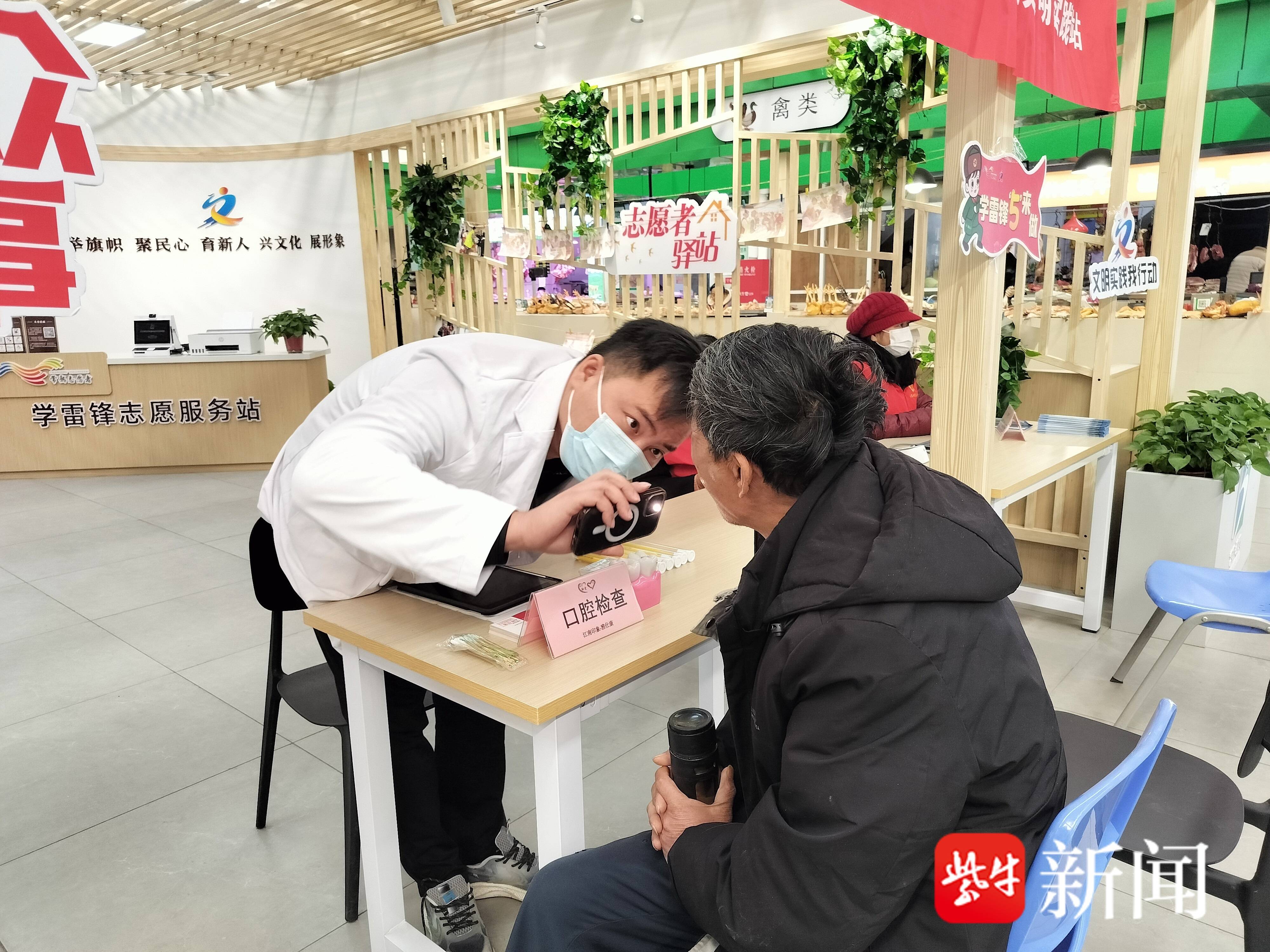 “您的血压有点偏高,平时要注意饮食清淡,少盐少油。”量血压摊位前围满了村民,志愿者耐心地为村民提供了血压测量、血糖检测等多项健康检查服务,并针对性地提出健康建议;口腔义诊摊位则提供了免费的口腔检查服务,牙医耐心地为老年人讲解口腔健康知识和常见口腔疾病的治疗方法,同时鼓励老年人定期进行口腔检查,提前预防口腔疾病的发生。磨刀、清洗眼镜便民服务摊位,同样吸引了一大批居民前来“赶集”。