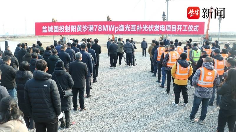 12月18日,盐城国投射阳黄沙港78MWp渔光互补光伏发电项目正式开工建设。