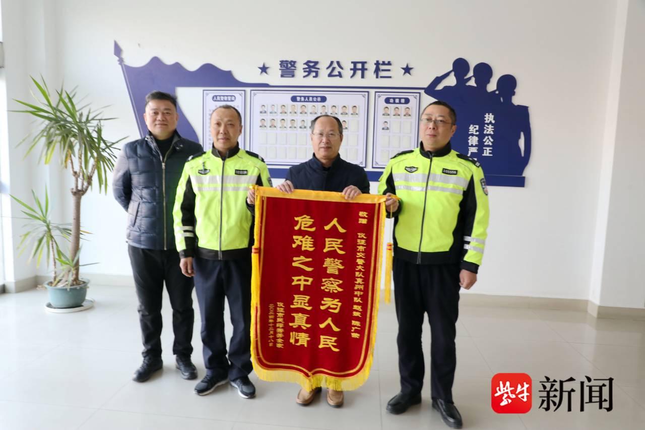 扬子晚报网12月20日讯(通讯员 余祥 刘玉华 记者 徐媛园)12月18日上午,缪女士的丈夫来到仪征市交警大队真州中队送来写有“人民警察为人民,危难之中显真情” 的大红锦旗,向仪征市交警大队真州中队副队长赵斌和辅警陈光荣表达感谢之情。