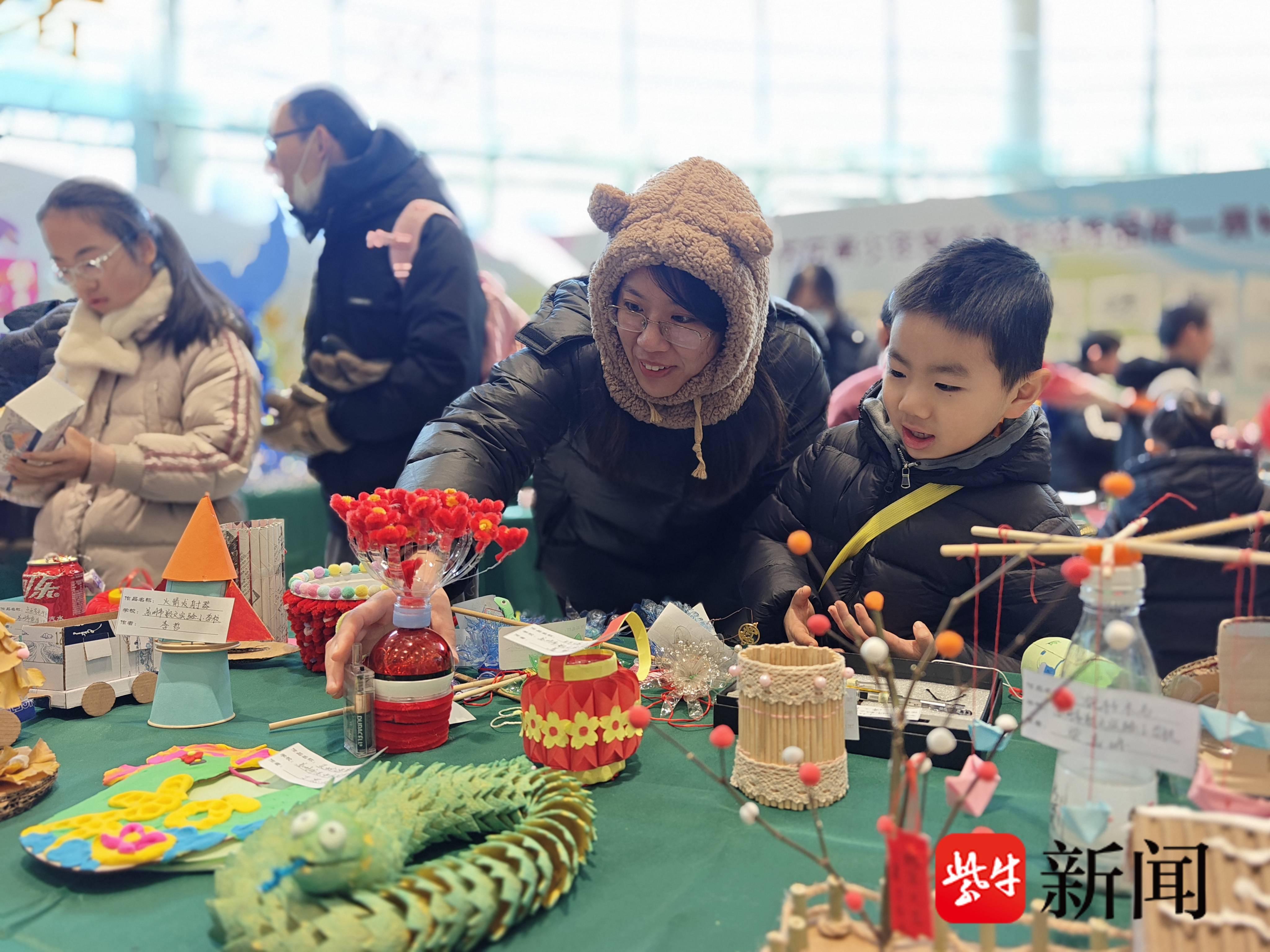 “妈妈,我要把这个作品拍下来,回家也做一个!”每个展台前都围满了人,学生、家长观展热情高涨,有的研究作品是用什么材料制作的,有的感叹于创意的新颖,有的惊叹于制作的精美程度,有的忍不住举起手机不停拍……