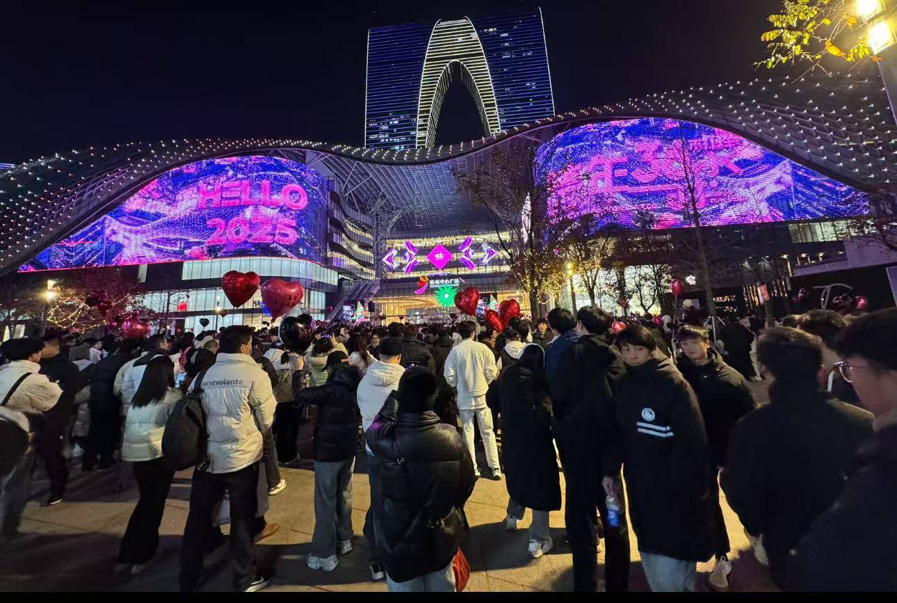 2025年的跨年之夜,苏州中心因环境优美、商品齐全、各种款式繁多、信誉好、服务优而著称,早已在市区成为了万众瞩目的焦点。每逢佳节或周末,苏州中心内人山人海、繁华无比,似一幅动人的时代画卷。