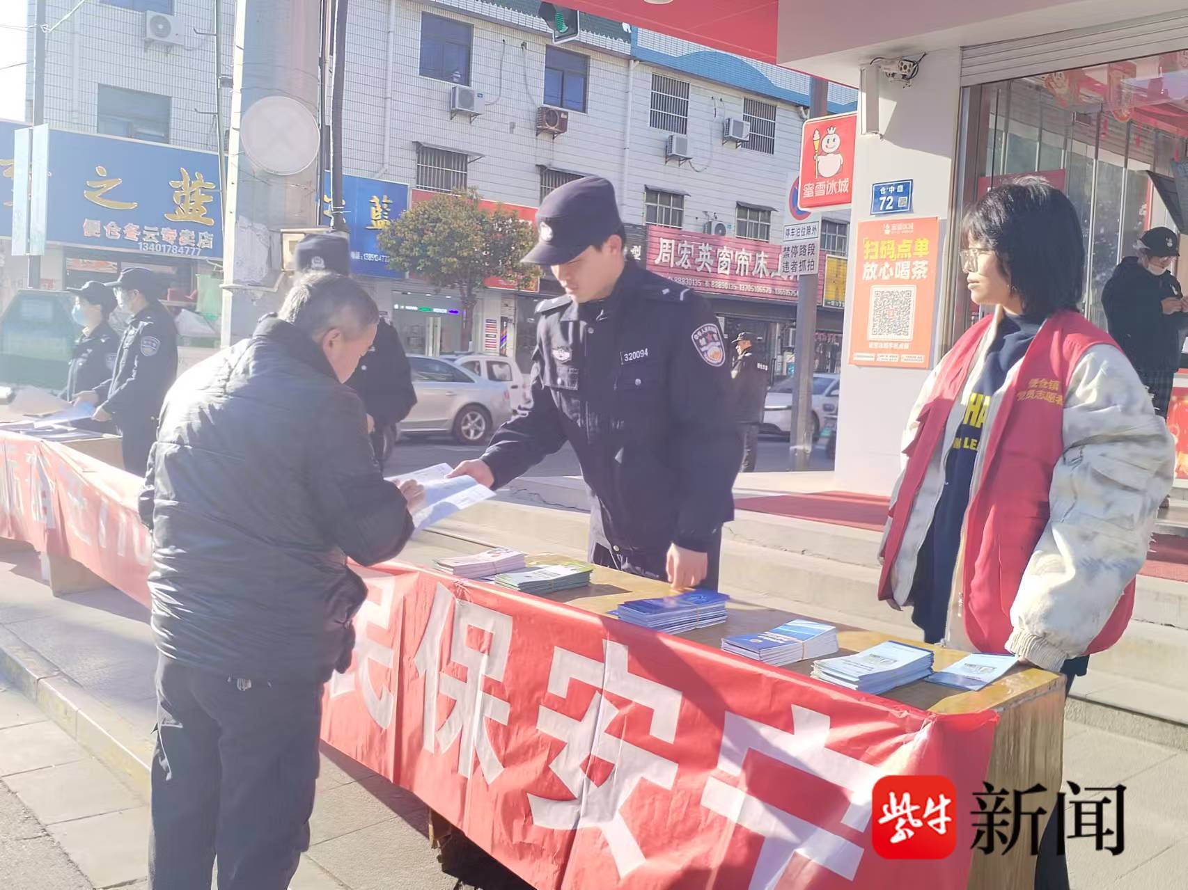 为增强辖区内居民在禁毒、反邪教、防养老诈骗等方面的法律法规知识,营造和谐稳定的氛围,1月10日上午,盐城市亭湖区便仓镇新时代文明实践所、便仓派出所、便仓社区新时代文明实践站联合开展“砥砺奋进110 一心为民保安宁”主题宣传活动。