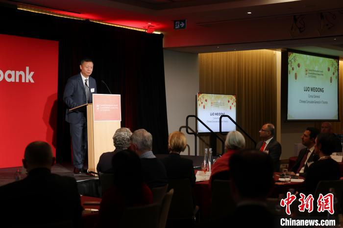 当地时间1月17日,加中贸易理事会在加拿大多伦多举办农历新年招待会。图为与会的中国驻多伦多总领事罗伟东致辞。中新社记者 余瑞冬 摄