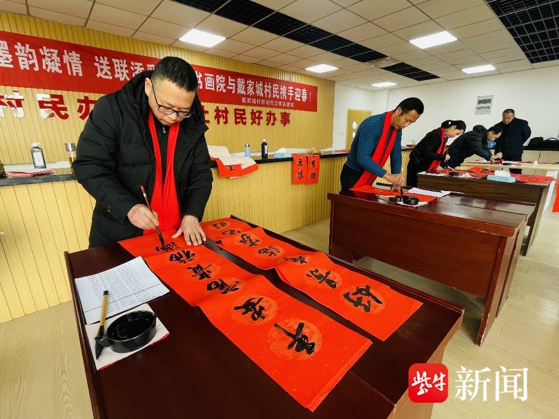 扬子晚报网1月22日讯(记者 郭一鹏 通讯员 魏宏伟) 1月21日,南京高淳区墨言书画院的书法家们应邀来到戴家城村,在村新时代文明实践站开展的“墨韵凝情,送联添彩”活动现场挥毫。