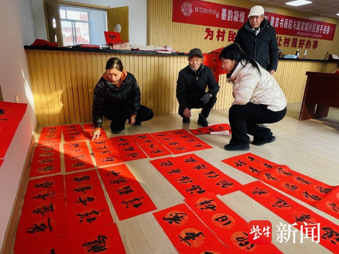 据了解,高淳区墨言书画院成立于2019年9月,书画院荟萃了一批高淳当地书画精英。他们中有中国书协、美协会员多人,省市书协、美协会员十余人,县书协、美协会员近 20余人。活动现场,书法家们凝神静气,笔走龙蛇,一副副寓意吉祥的对联在笔下一气呵成。与此同时,村委工作人员忙着为年纪大的老年人挑选春联。