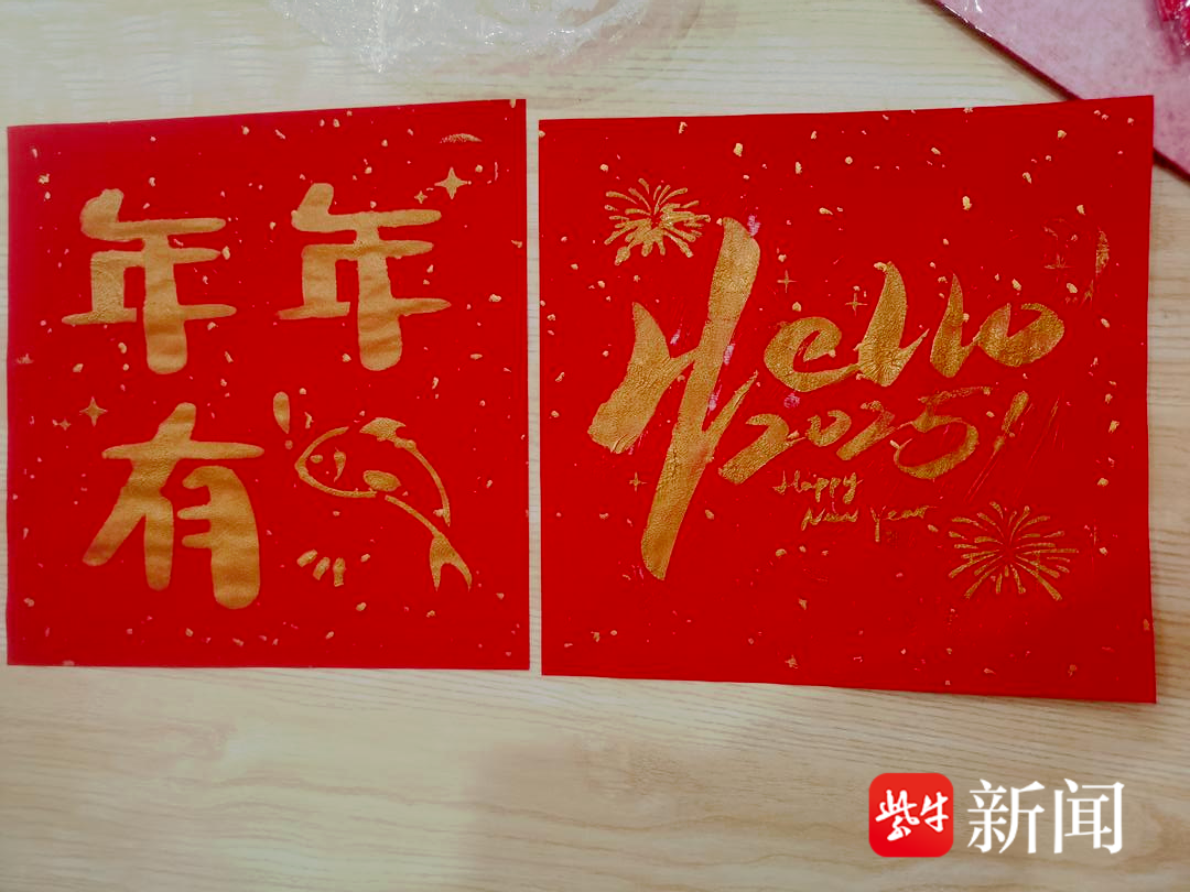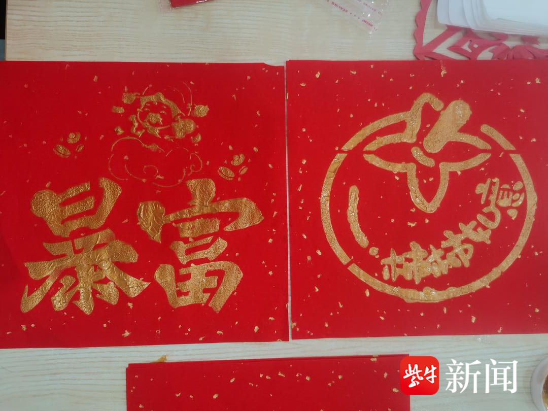 紧接着,社工又向大家详细介绍了拓印的历史背景、发展脉络以及技艺特点,并现场示范福字拓印的制造步骤和环节。“大家在制作时,注意海绵要均匀地把模板沾上油墨,揭开宣纸时下手要快,不然就会重影……”在工作人员的指导下,大家认真地拓印,随着一次次尝试,一张张充满创意和喜庆的新春年画诞生了。这些年画不仅展示了大家的才华和想象力,也寄托了大家对新一年的美好祝愿。