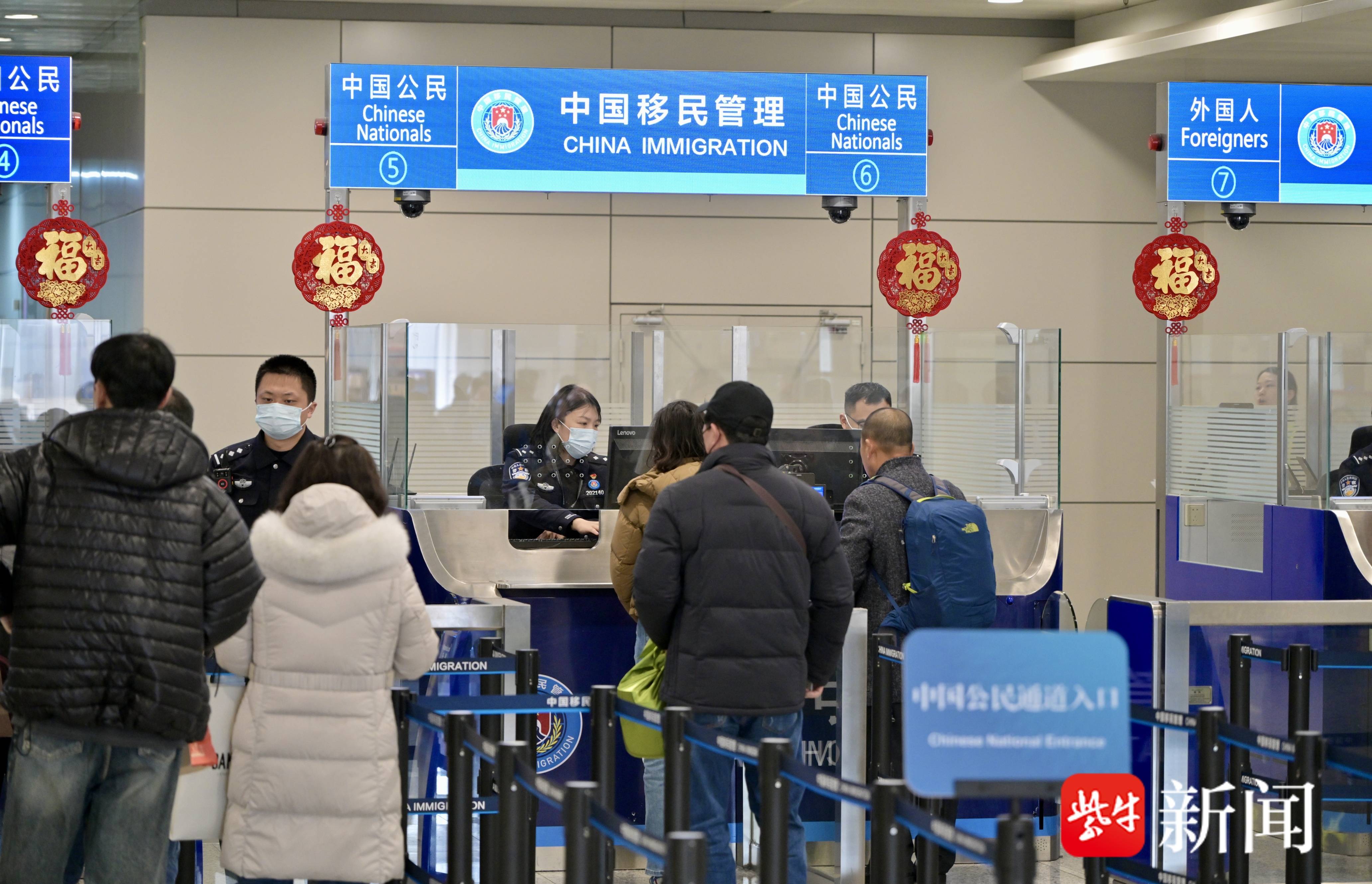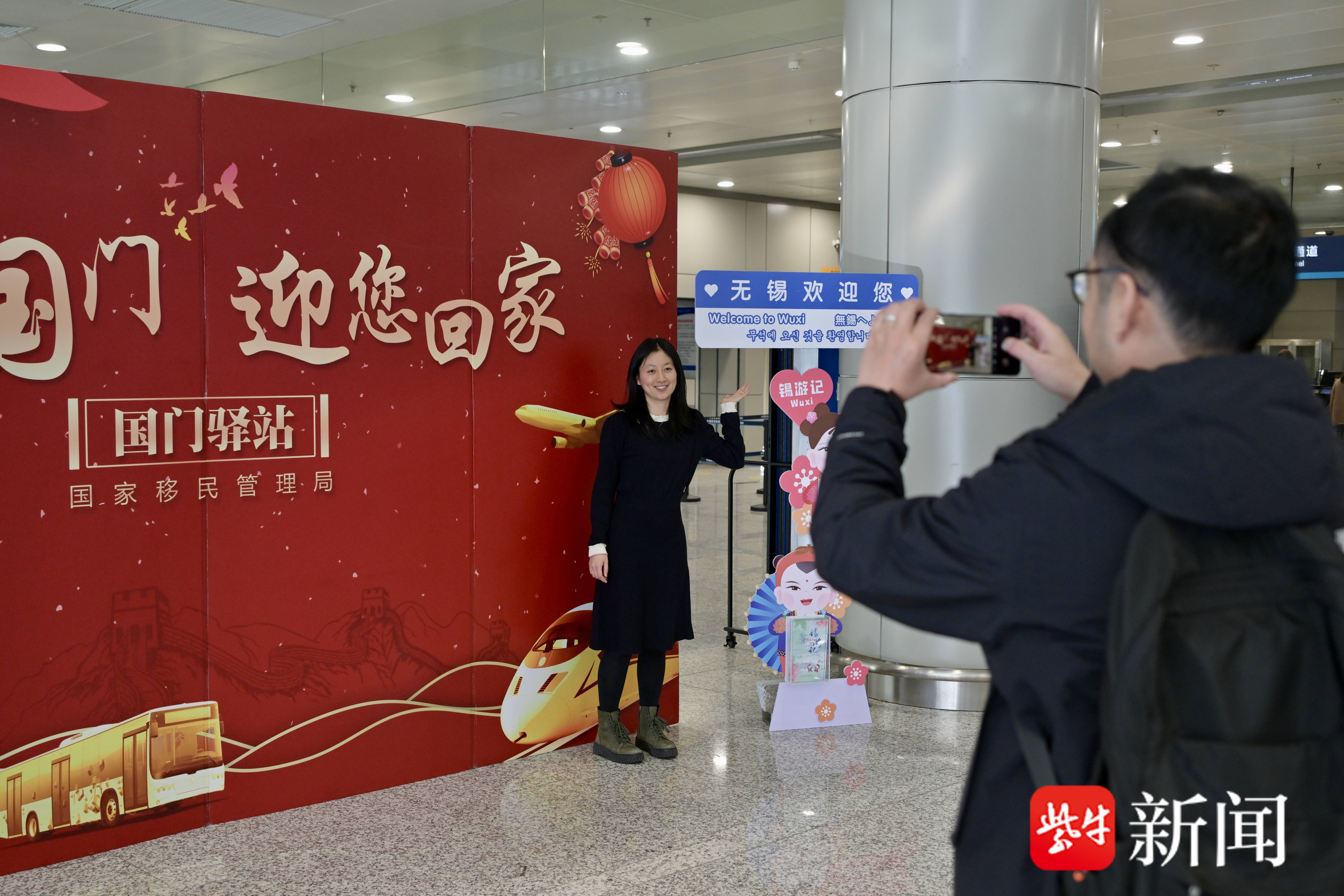 为了迎接新春,民警们在执勤现场布置了“温暖国门,迎您回家”展板,引得不少旅客打卡拍照,到处都是团圆的“浓浓年味儿”。“我这次来无锡是看望妻子和孩子,很期待和家人的团聚。”日籍旅客下原将宏告诉记者。“验证台上也挂着红红的灯笼,让人感觉特别喜庆。”