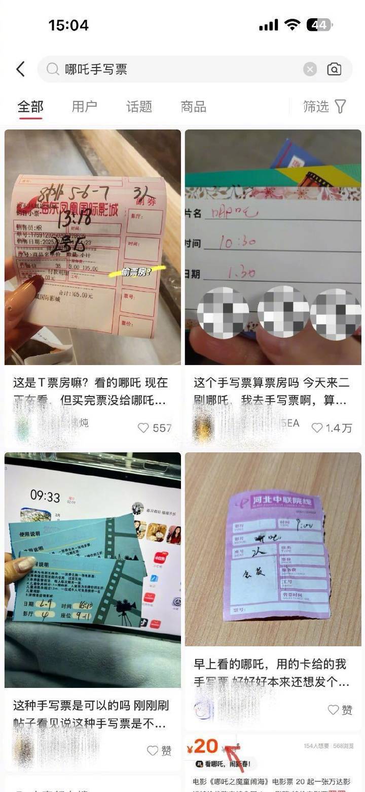 在某社交平台,记者以“哪吒手写电影票”为关键词搜索,出现约29篇笔记。打开这些笔记,记者发现,笔记内容,大多是质疑手写票为偷票房行为。网友“咕噜咕噜小狗”说,“第一次遇到这种情况,了解之后已经举报了”。