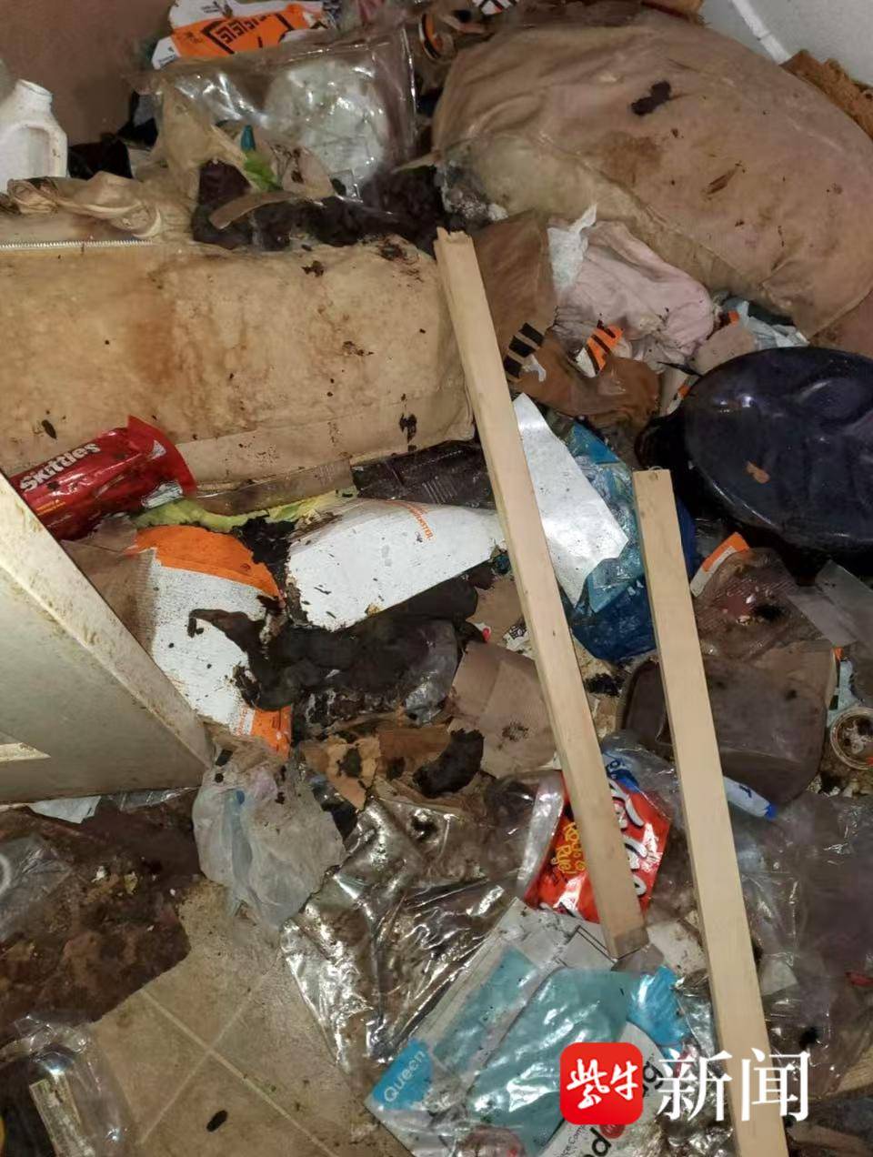 警察发现里面的居住条件极为恶劣,垃圾堆积超过1米,屋内遍布粪便,浴缸及厕所里充满了排泄物,屋内根本没有卫生纸或者个人卫生用品。