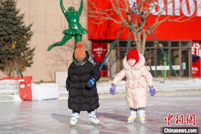 黑龙江哈尔滨,小朋友在南岗区一公益冰场滑冰。赵宇航 摄