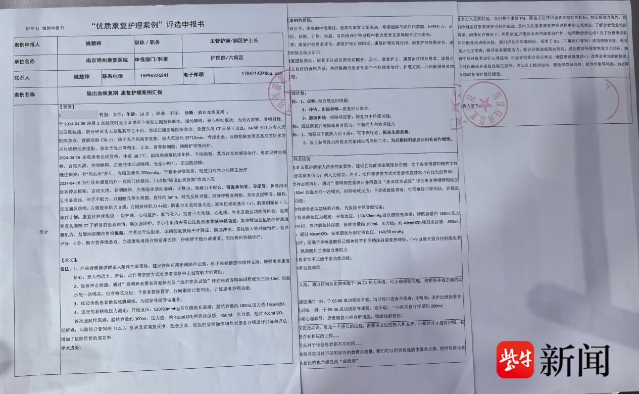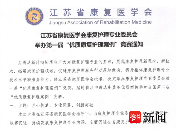 南京明州康复医院获江苏省康复医学会康复护理专业委员会“优质康复护理案例”竞赛优秀奖