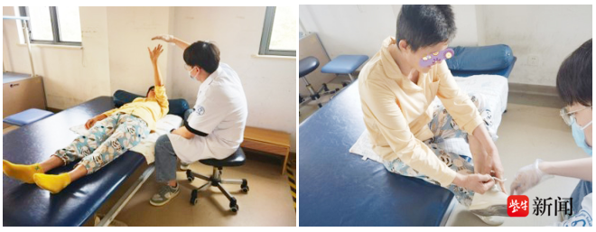在护士长的帮助下,曹阿姨看到了自己的明显进步,想要康复的心愈加热烈。那时住院正值晚春初夏,她每天7:30一起床,各项手法、理疗、针灸、机器人等课程排得满满当当,课后又在家属帮助下积极加练,每次训练完后常常满身大汗,但是也坚决不放弃,严格要求自身,成了康复六病区人人都知道的“康复模范”。功夫不负有心人,仅用50天,曹阿姨就从一个卧床患者变成了一个能够缓慢行走的“普通人”,并且出院回家,相信在这个毅力和努力下,她很快能够恢复如初!