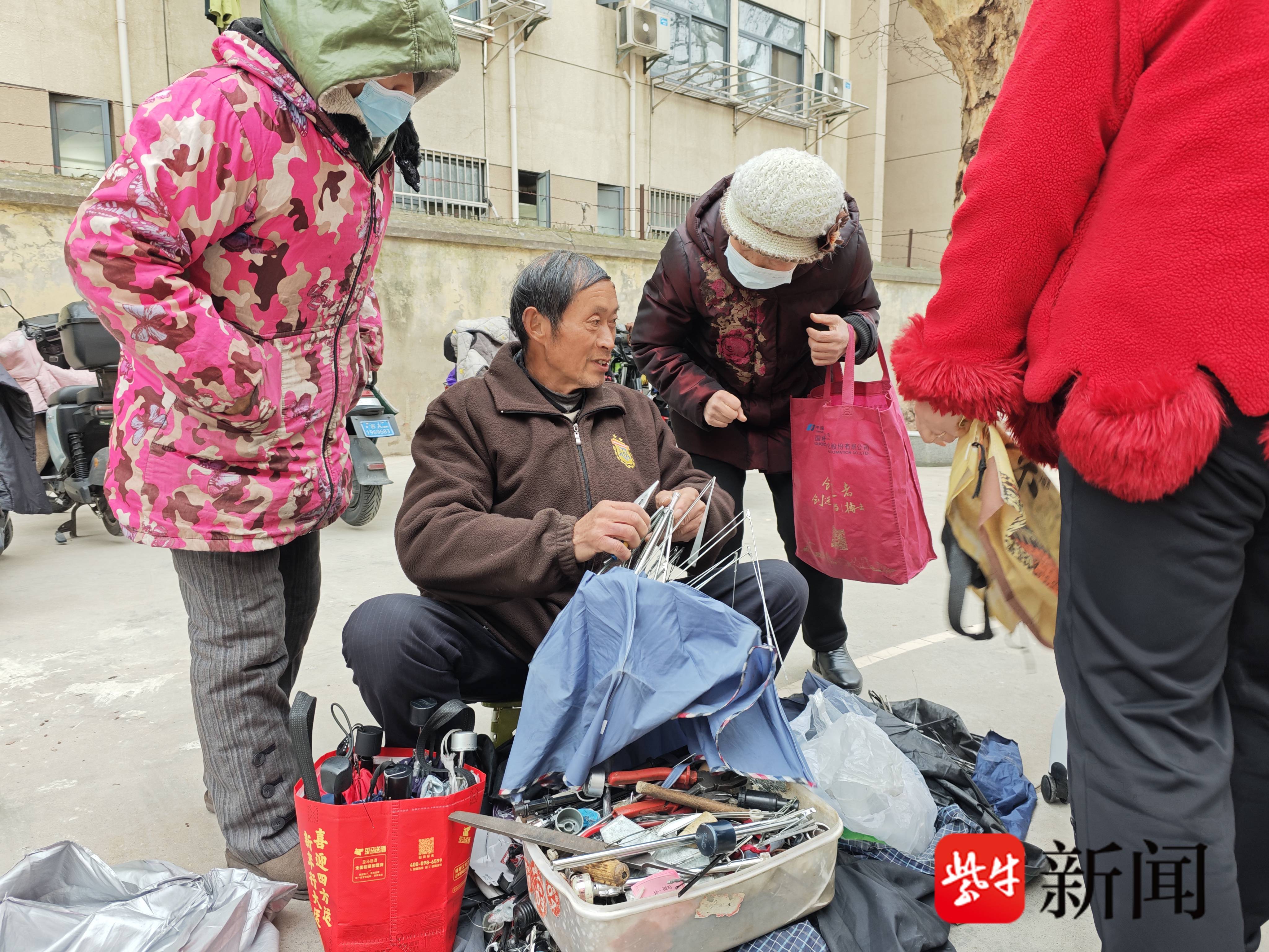来自东南大学附属中大医院的医护团队为居民提供血压血糖检测、中医问诊及免费的健康咨询等服务;来自中央门街道的社区志愿者们开展的免费理发、磨刀、修伞、修鞋等服务同样颇受青睐;反诈宣传摊位前,交通银行南京中央门支行的工作人员则通过真实案例提醒居民注意分辨,提高反诈意识。