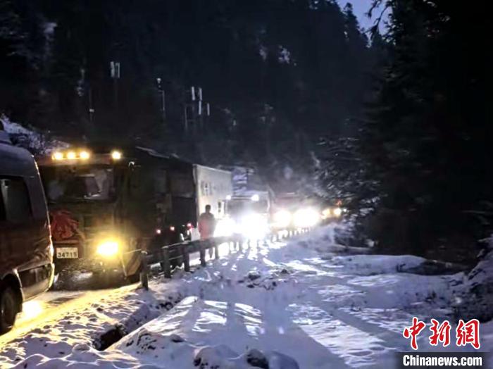西藏色季拉山国道雪夜堵塞 边防官兵紧急疏堵保通