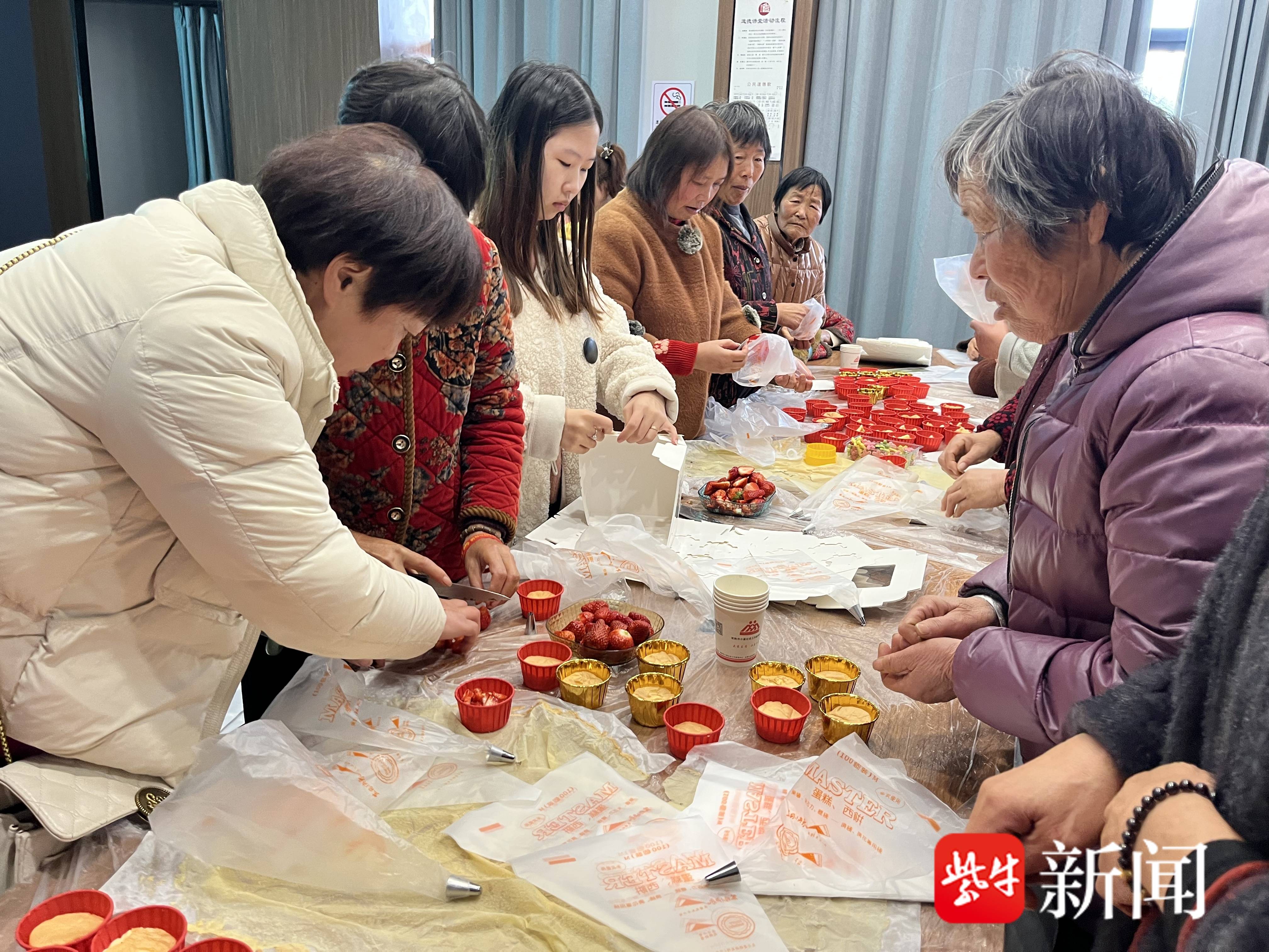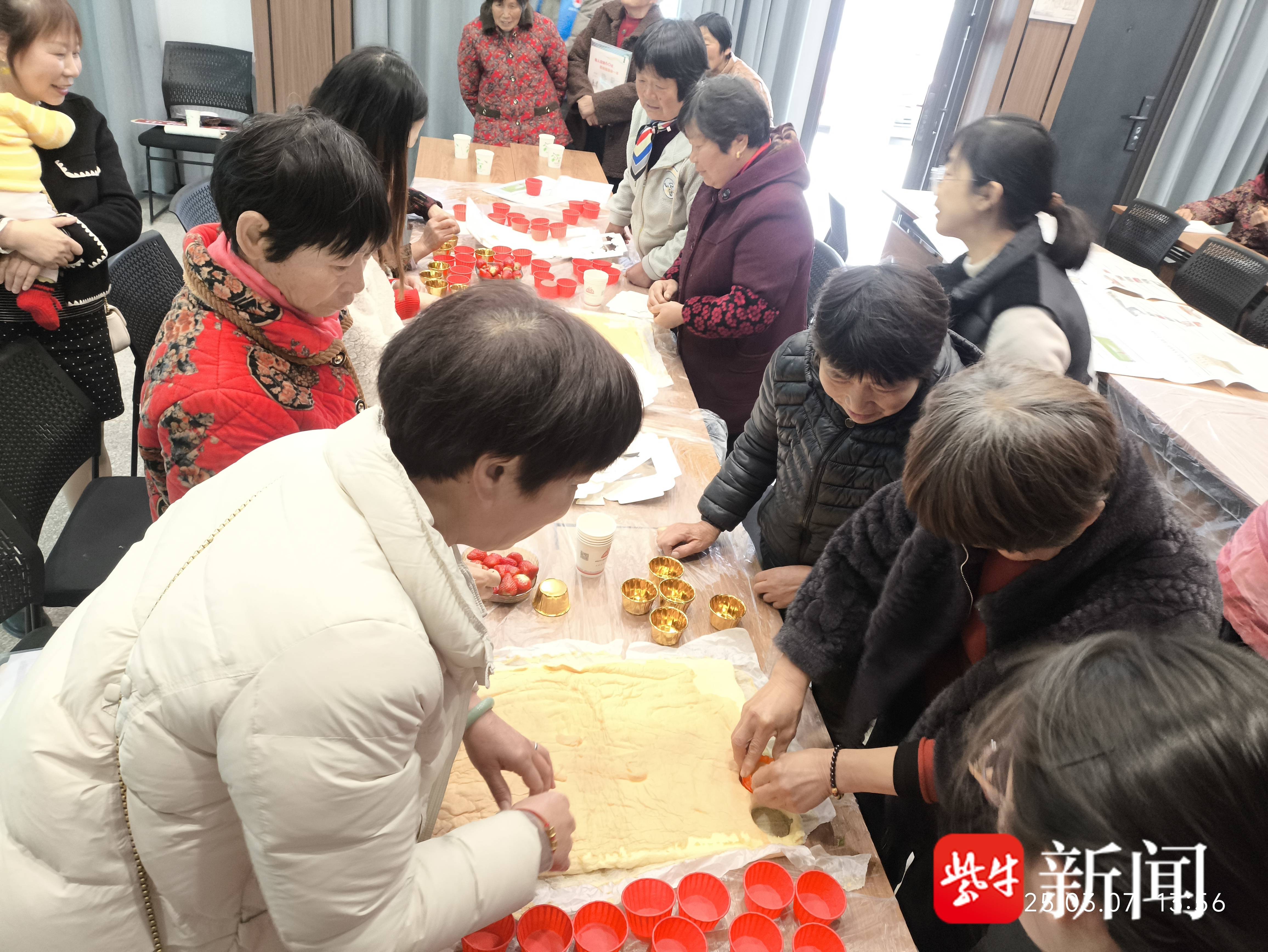 宣讲结束后,活动进入轻松愉悦的烘焙环节。在社工的指导下,妇女们化身“甜品达人”,打蛋、搅拌、装杯……大家分工协作,边制作边交流生活趣事,现场欢声笑语不断。村民王大姐捧着亲手制作的蛋糕笑道:“平时忙家务,难得有机会和姐妹们一起动手做点心,感觉特别治愈!”