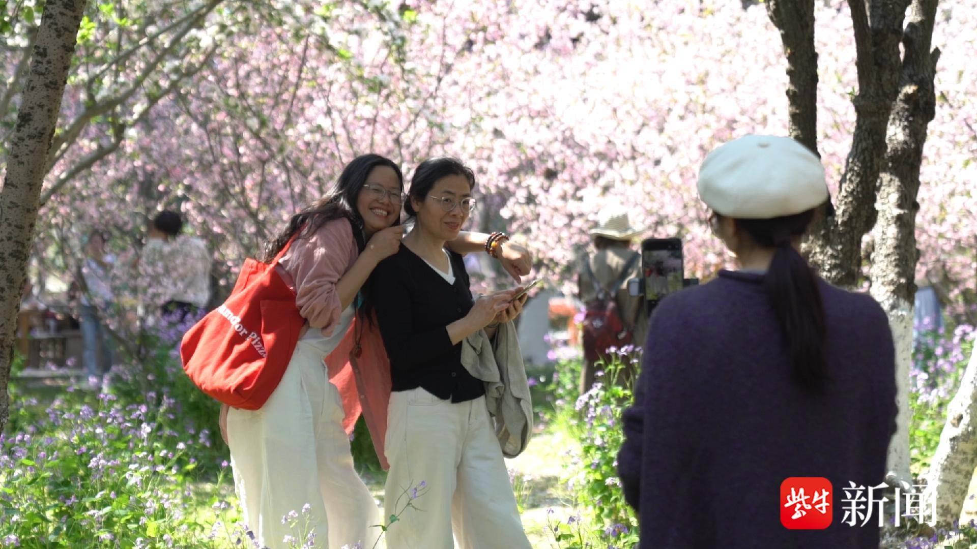 除了海棠花,莫愁湖公园内的二月兰也开得正盛,蓝紫色的花朵与粉色海棠相互点缀,形成了独特的景观。湖边的长椅旁,盛开的海棠花成为了天然背景,游客们坐在长椅上,静静地欣赏着湖光山色与海棠花的美景,沉浸在这美好的春日氛围中。随着海棠花进入盛花期,莫愁湖公园已成为南京春日赏花的热门打卡地。虽然近日气温较高,但从傍晚起强冷空气来袭,未来几天气温将明显降低。市民和游客在外出赏花时,需注意及时增减衣物,预防感冒等疾病,更好地享受春日美景。