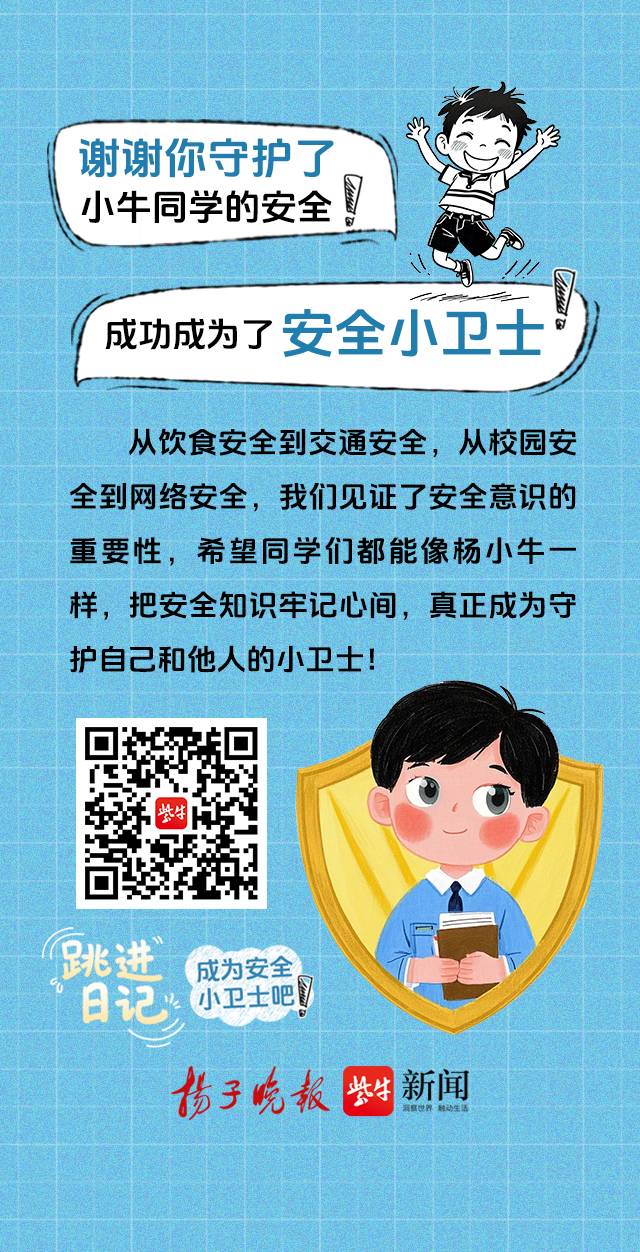 今年是第30个全国中小学生安全教育日,让我们跳进杨小牛同学的日记,帮他成为安全小卫士吧!