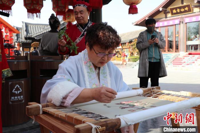 图为艺人展示“东京汴绣”。李海珠 摄