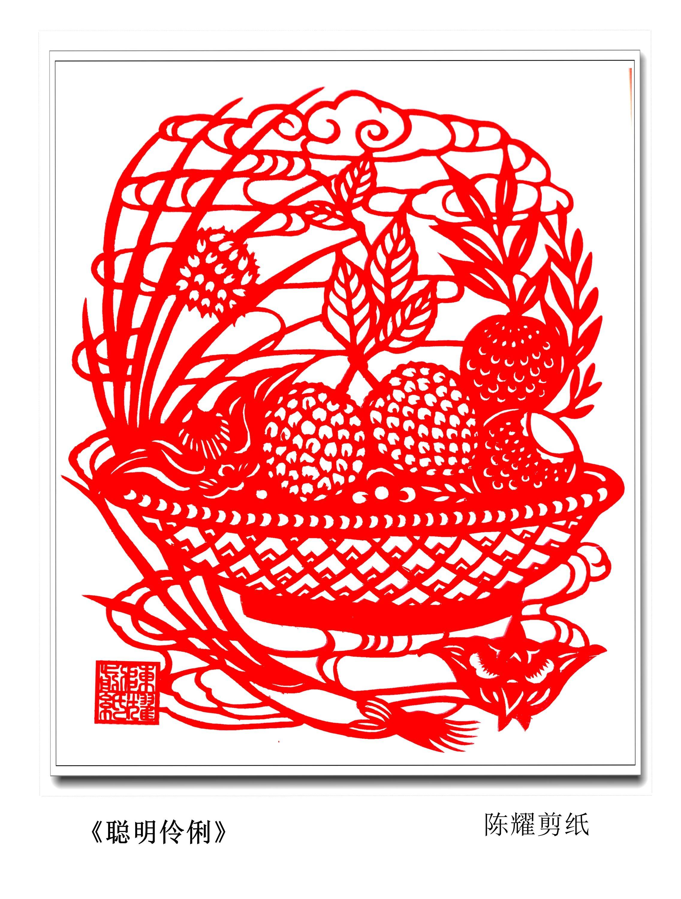 江苏工艺美术名人、南京工艺美术大师、非遗代表性传承人陈耀剪纸作品《聪明伶俐》。