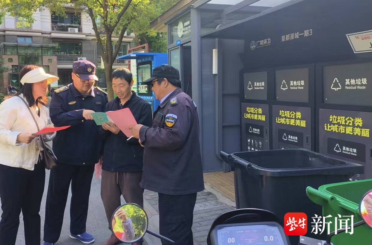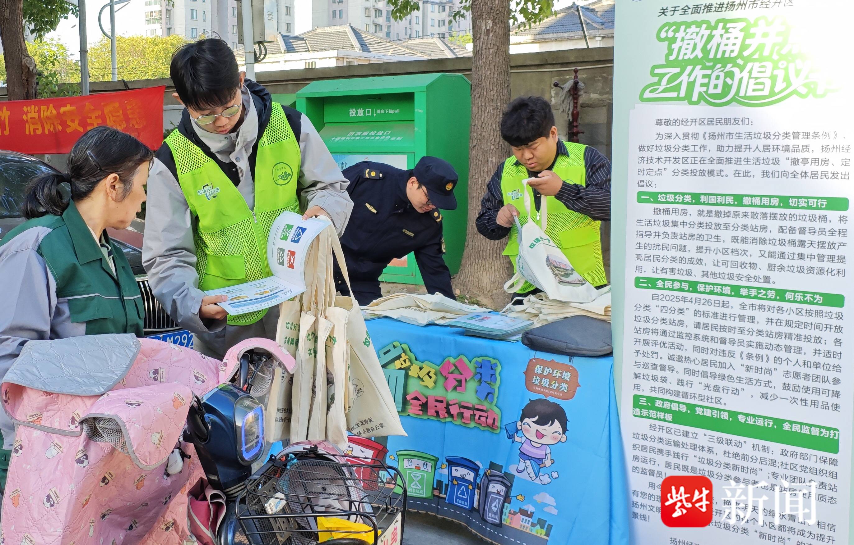 活动中,城管环卫人员与社区、物业工作人员、志愿者共同作业,对已运行垃圾分类厢房小区内楼道口、道路旁等公共区域的零散垃圾桶进行全面撤除,清理原点位残留垃圾,并将撤除的垃圾桶统一搬运至小区指定暂存点或分类厢房内,后续由社区、物业统一管理。相关人员现场查看小区垃圾分类厢房设置是否合理,分类标识是否规范、是否设置投放点位指示牌。现场发放《扬州市生活垃圾分类指南》,面对面讲解可回收物、有害垃圾、厨余垃圾、其他垃圾“四分类”标准、告知垃圾分类厢房位置及投放注意事项及“四分类”收运处置流程,引导居民自觉参与定时定点分类投放。与此同时,开展入户宣传,引导居民习惯养成。