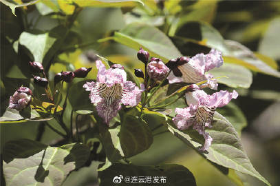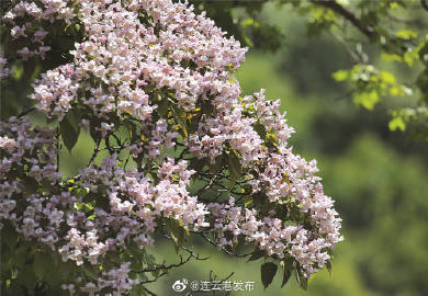 近日,连云港连云区宿城街道枫树湾景区大片楸树林繁花似锦,成为春季的一道生态风景线。每年的谷雨时节,正是云台山近万株楸树林开花的时节,人们纷纷前往赏花拍照。