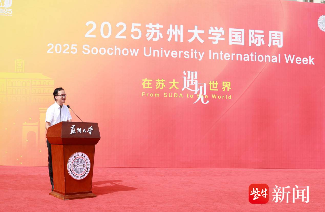 张桥向长期以来关心支持学校国际化事业的社会各界表示感谢。他指出,学校始终坚持名城名校融合发展战略,持续推进人才强校和国际化战略。依托苏州深厚的历史底蕴与蓬勃的现代活力,学校一方面大力引育全球高层次人才,另一方面主动“打开校门”,坚持开放办学、合作共赢。国际周的举办为师生搭建了跨越地域与文化交流的桥梁,期待未来能让更多的中国故事、苏州声音借助苏大人的脚步与话语实现广泛传播,向世界展示真实、立体、全面的中国,为促进文明交流互鉴贡献更多苏大力量。