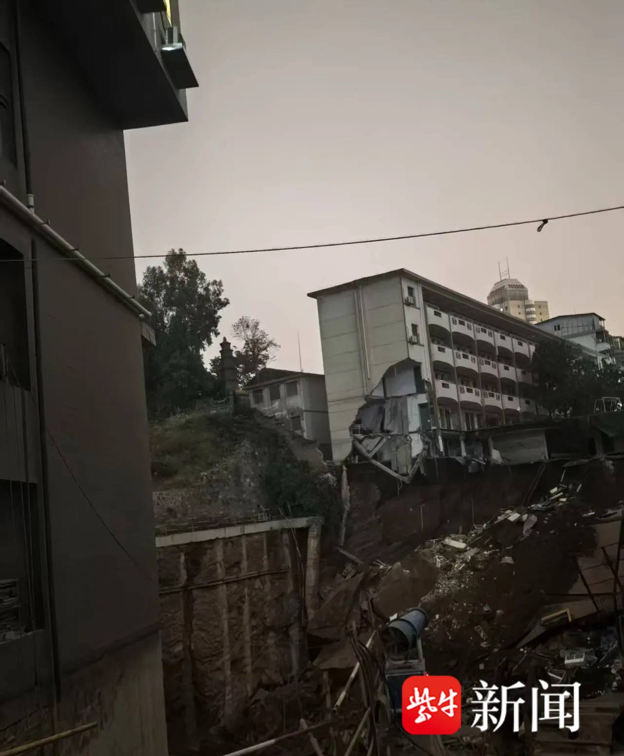 据此前媒体报道,邵阳市大祥区政府工作人员回应称,现场是有个堡坎塌了,设施属于旁边小区,目前多部门到场处置,事件未造成人员伤亡,现场资江学校操场和1栋教学楼受到损伤,目前原因还在调查。