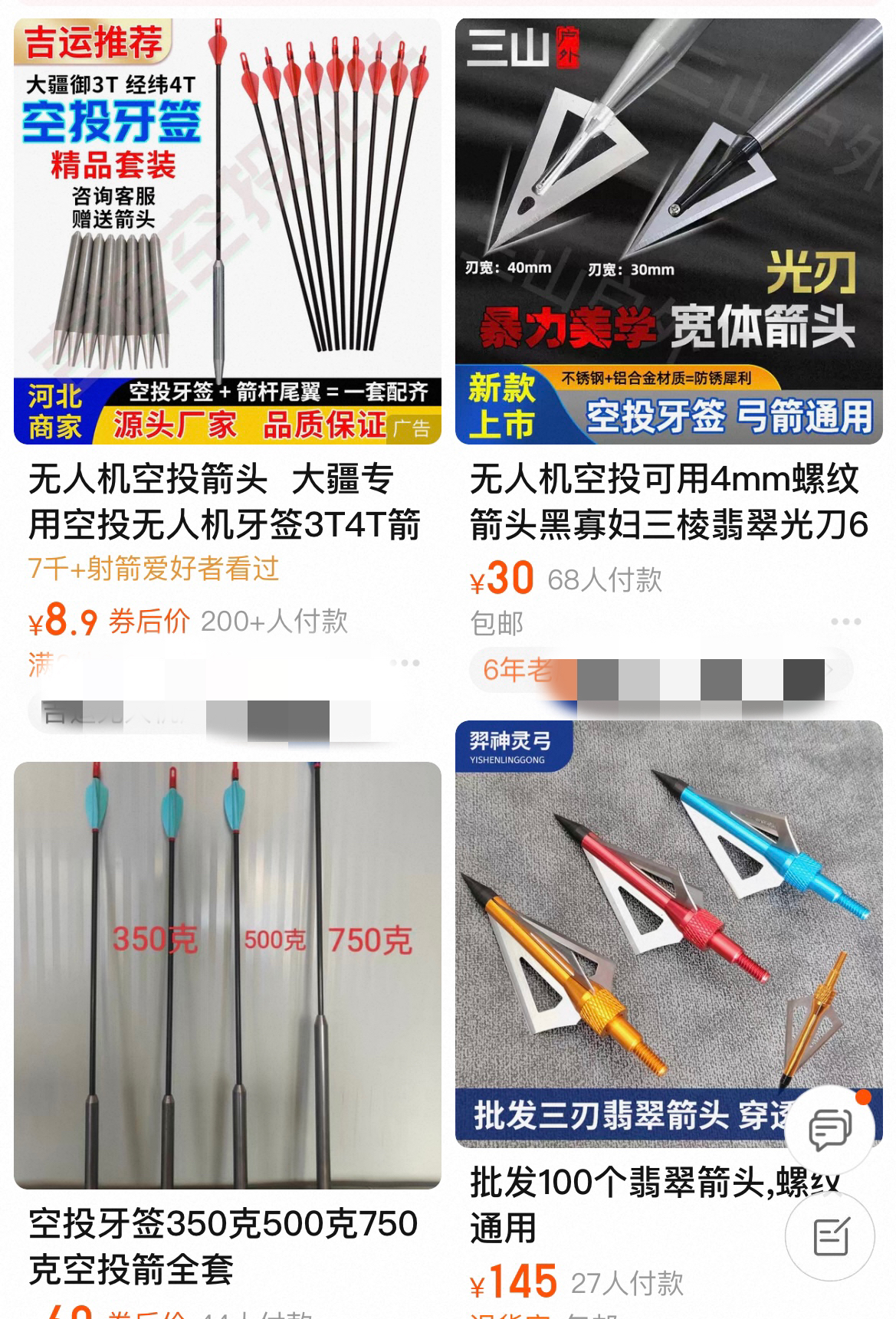记者在电商平台搜索关键字“无人机空投箭头”,发现有很多商家在网上售卖挂载在无人机空投器上的圆锥形箭头,命名为“空投牙签”,店铺还标明,仅允许有专业资质的人使用,非专业人员需在专业人员陪同下使用。店铺工作人员告诉记者,是否需要专业资质需看当地政策,“如果地方有规定,需要办理护农证或者是狩猎证。目前该种‘空投牙签’不属于管制器具。”
