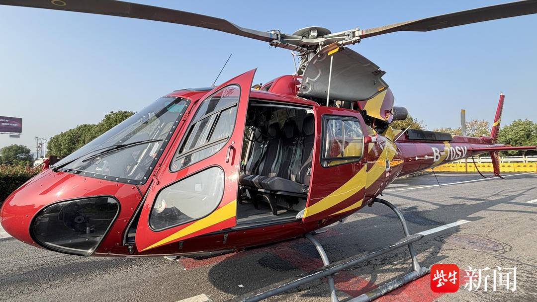当天上午,记者就早早来到了位于南京溧水柘塘服务区附近的临时起降点,一架红色的直升机正缓缓降落。此次用于试飞的为空客AS350“小松鼠”直升机,分前后两排,可搭载两名飞行员和四名乘客,具备高效、灵活、舒适等特点。飞行员介绍,此次航线里程约98公里,飞行高度约300米,飞行时间仅40分钟,对比两地驾车需约90分钟,直接省下一半的时间。