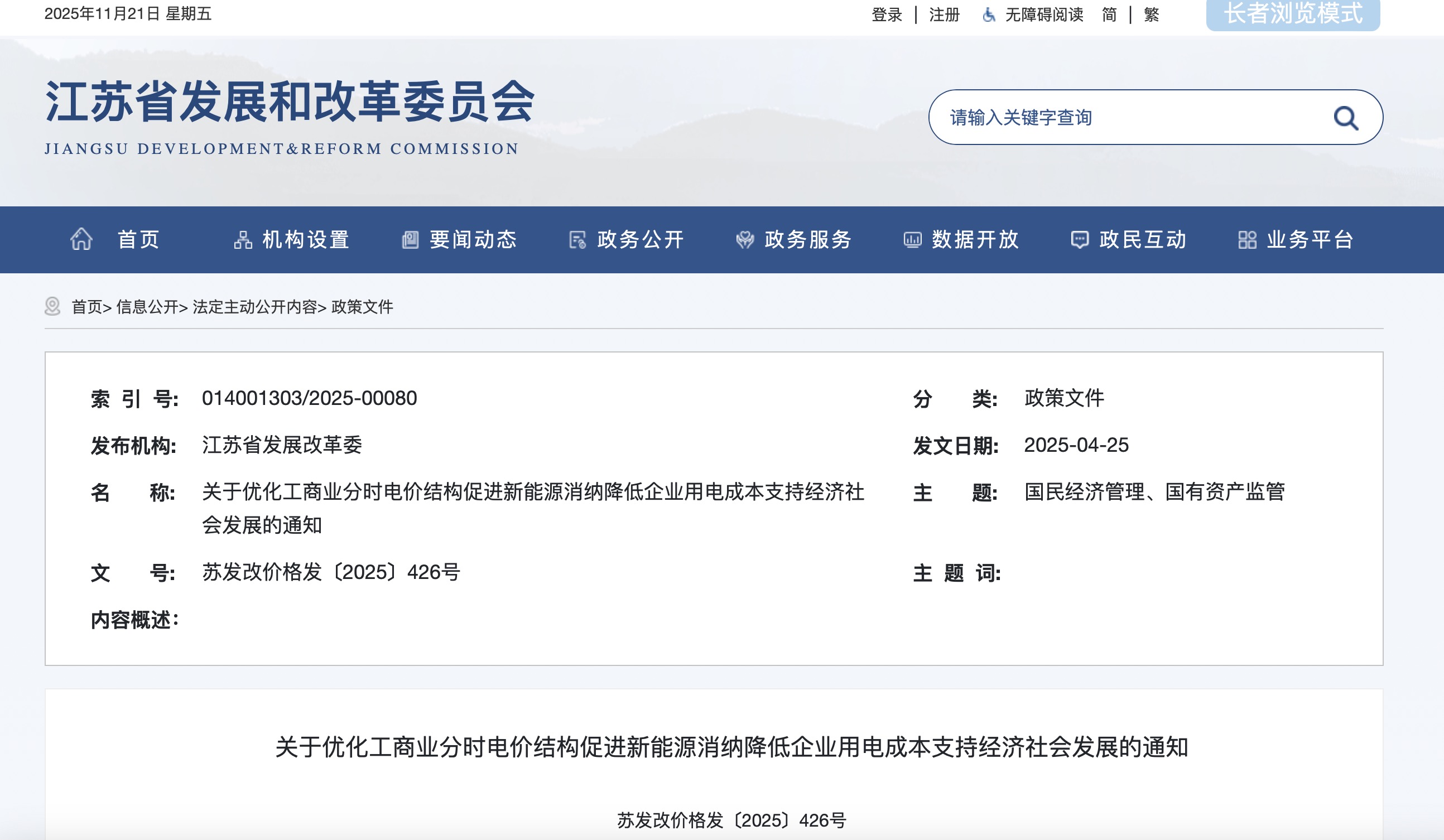 江苏省发展和改革委员会曾在2025年4月25日发布《关于优化工商业分时电价结构促进新能源消纳降低企业用电成本支持经济社会发展的通知》,该政策已于2025 年 6 月 1 日起实施。根据通知内容,12月至次年2月,工商业用电将采用“冬季电价”,这意味着,江苏距离执行“冬季电价”已不足10天。记者注意到,该政策不仅关系到企业的“钱袋子”,还为电动车主带来了省钱空间与潜在收益,可关注反向向电网放电赚取收益。